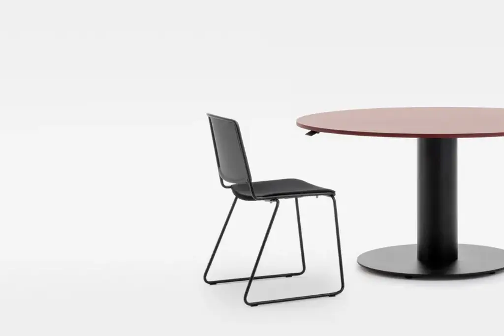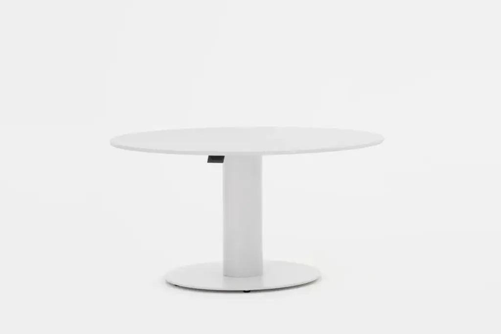 FOLLOW is height-adjustable table that effortlessly and noiselessly adjust to the user’s posture and need. The meeting version with painted steel frame and round top available up to 1600 mm in diameter, is ideal for meetings in office spaces but can also be used in meeting areas and convivial areas. Height adjustment handle in reinforced nylon. A table that can be placed and moved anywhere: it is not connected to any cable as it does not need any electricity supply. The Follow tables collection it was acknowledged for its uniqueness and technological excellence by the European Union's research and innovation program H2020.The frame of the table (Ø 800 mm) is designed for optimal operation within a weight range (tabletop weight + accessory weight) between 28 and 36 kg. A load on the frame exceeding the maximum indicated weight (tabletop weight + accessory weight) causes the tabletop to quickly lower when unlocked. A load on the frame below the minimum indicated weight (tabletop weight + accessory weight) causes the tabletop to quickly rise when unlocked. If a lighter tabletop is to be installed or if no load is intended on the working surface, the accessory “counter-balance kit” (code 299MZ) can reduce the upward force by 5 to 10 kg, allowing proper movement operation. A second counter-balance kit can be installed to further reduce the upward force by 5 kg.