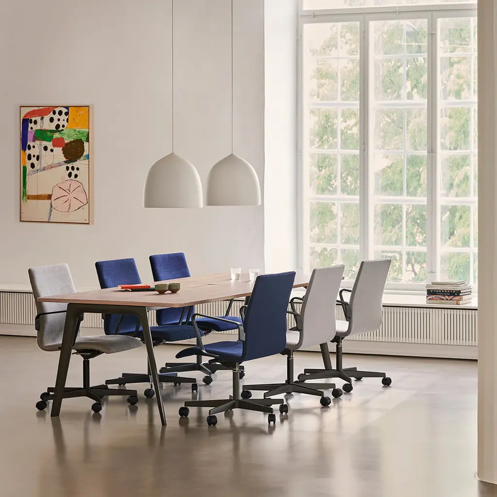 As inferred by its name, the Pluralis table by Kasper Salto offers a myriad of possibilities. Characterised by its understated design, elegance and uncompromising quality, it brings a whole new level of functionality to the workspace. The Pluralis KS422 single table is an elegant hub for daily working life. Multiple widths and optional overhang extenders provide ample room for up to six chairs while a discreet cable management system ensures heightened productivity.