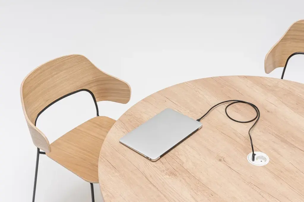 Tack is a table with a round worktop and a characteristic leg with disk feet that can be an excellent decor of the office or conference room. The worktop in numerous colour options in combination with a metal leg gives this piece of furniture a universal design, making it ideally suited to both modern and classic offices. Several variants of the table sizes allow for arranging the office, regardless of the available space. The table is addressed to people who want to create an inspirational and, at the same time, functional office arrangement.