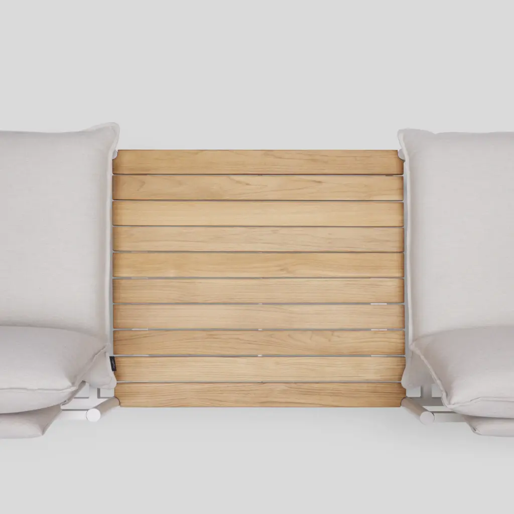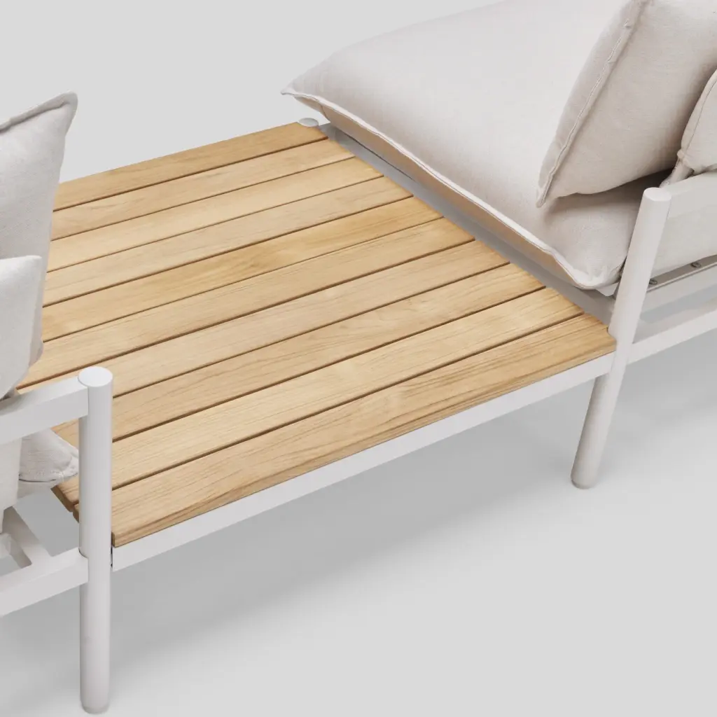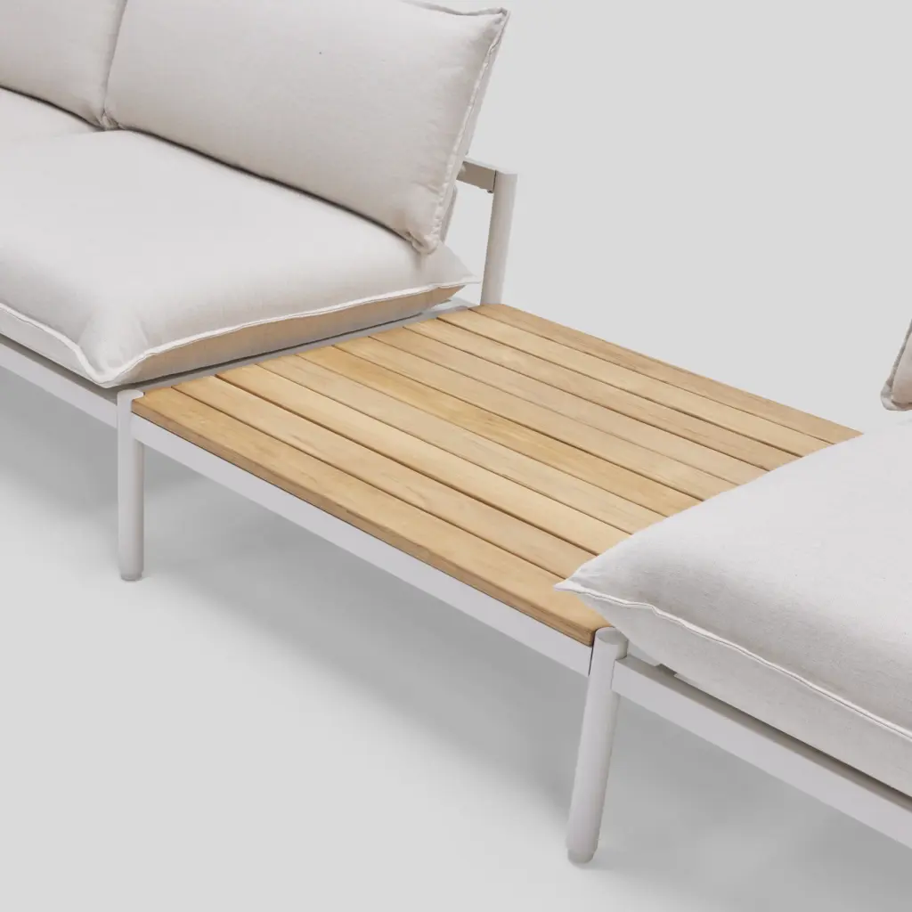 Part of the Terra lounge collection, the In-line Table module can be added anywhere in your outdoor setup. Features the beauty and warmth of a teak wood surface surrounded by durable matte-finish aluminum.