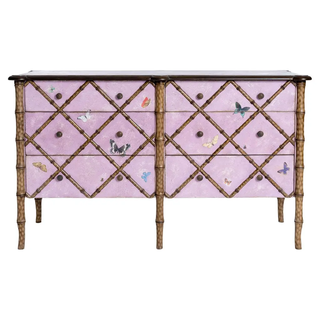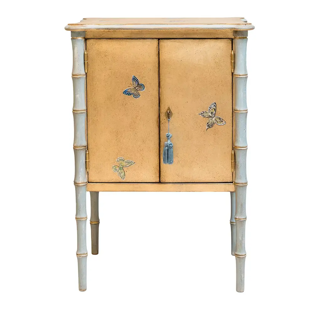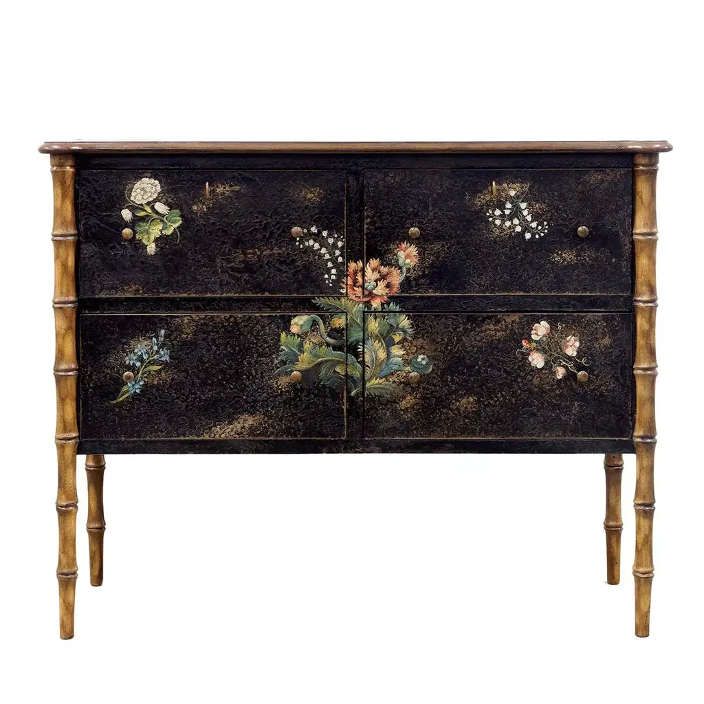 From our hand painted Furniture Collection, we are pleased to introduce you to our Apple Green Bamboo Lombardia Console with drawers. This beautiful creation is the perfect balance between the old-world of Venetian hand-painted Furniture and the new looks of today's design. In fact, the classic Venetian chinoiserie is hand-decorated using a light palette of colors, going from the apple green base, to the different shades of brown, greys and ochre of the detailed decoration. Lastly, the piece is made more contemporary and whimsical by the use of the bamboo, that becomes the perfect last touch, giving character and timeless appeal to the piece. Like all our furniture, this beautiful chest is made from scratch using the very best XVIII C. Venetian techniques of hand-painting and decorating. Of course, any colors and decorations can be entirely customized according to our customers’ requests. Set your imagination free and reach out to create your bespoke piece of furniture!