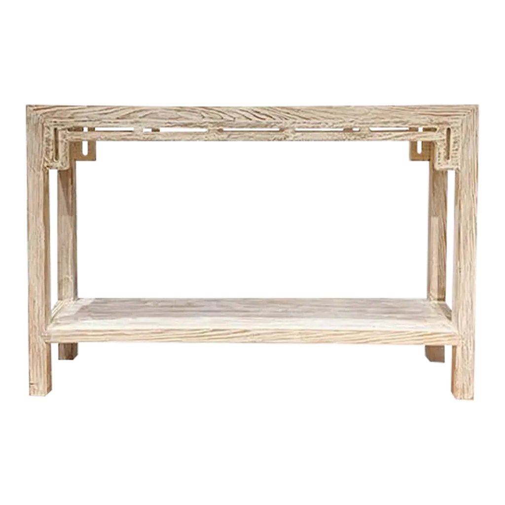 Asian Reclaimed wood console table is made out of elm wood. It has hand carving at bottom side leg. It is good piece to have behind sofa or any other place around house. Dimensions: 50.25"W x 11.75"D x 36"H