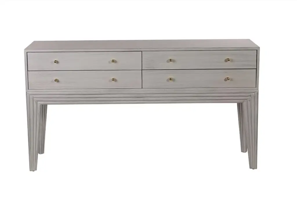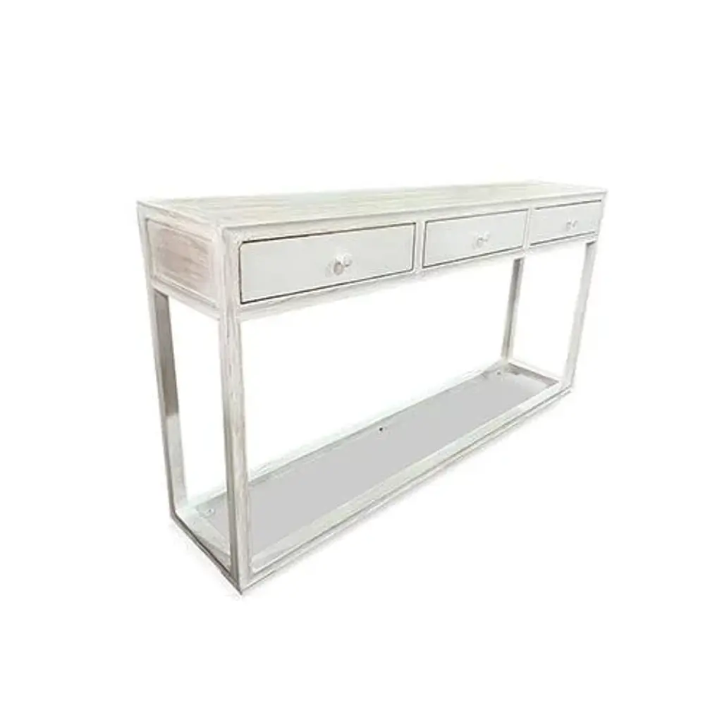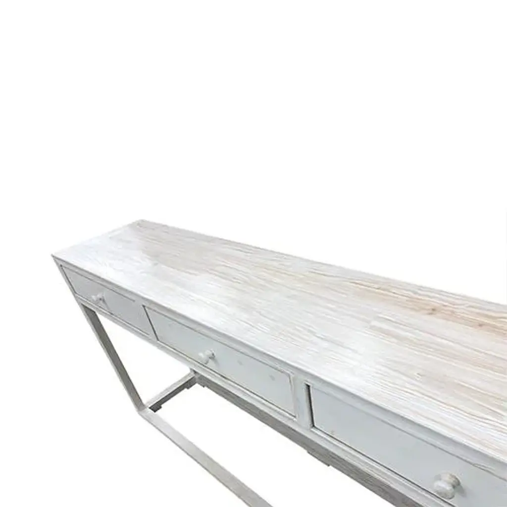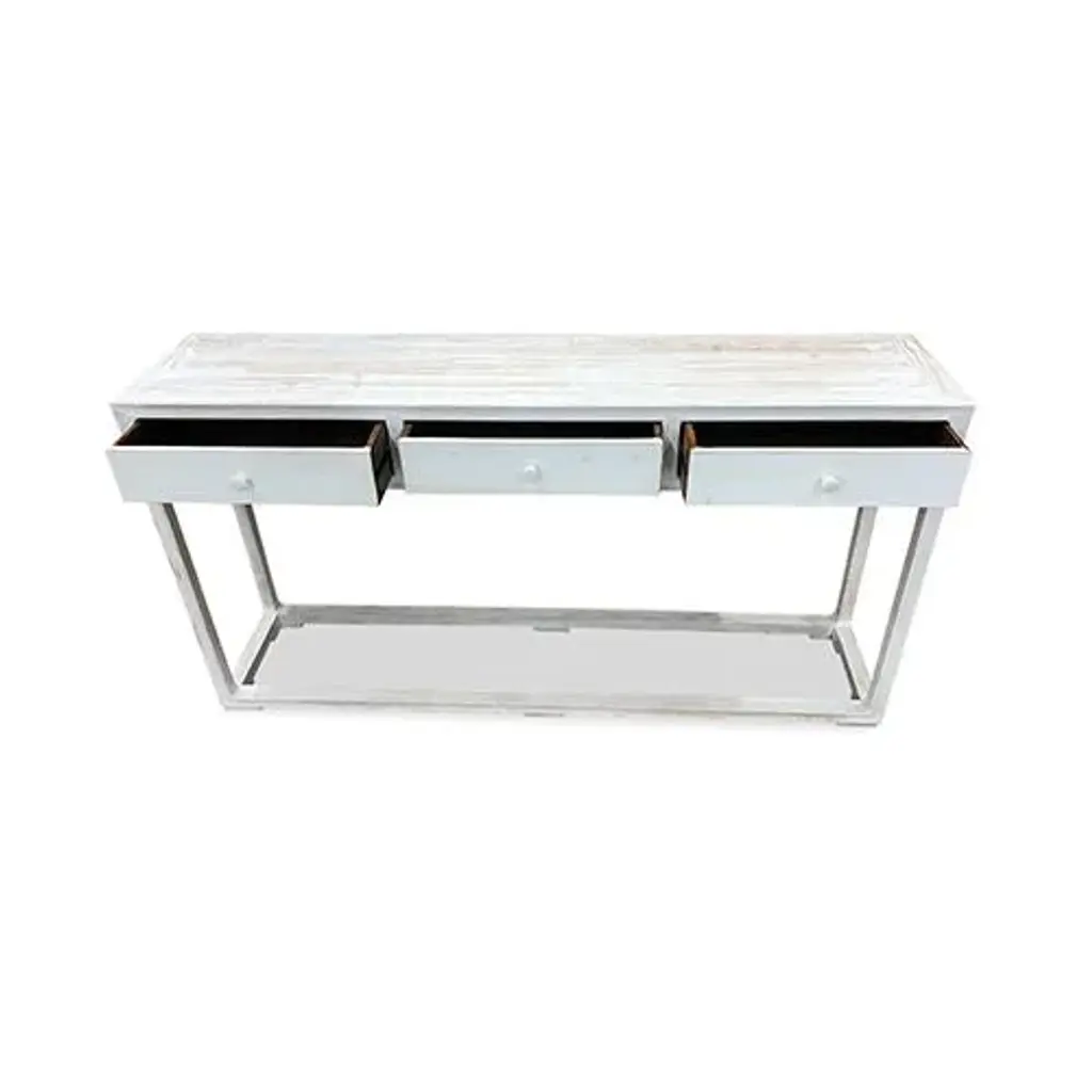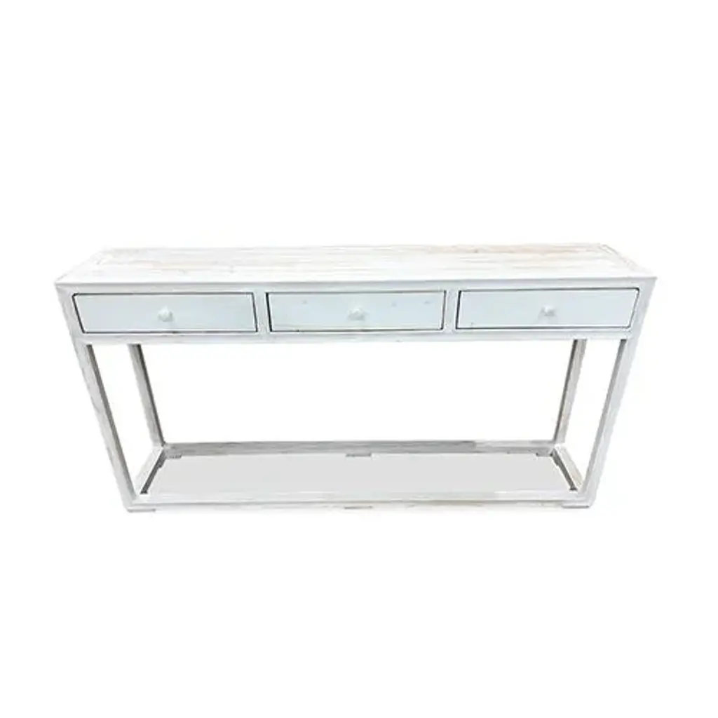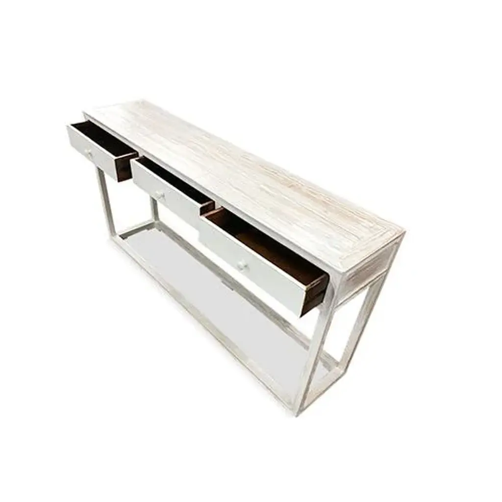Asian White Wash Console table is made out of elm wood. It has 3 drawers. It can be use for entry or behind the sofa. Dimensions are : 63"W x 13.75"D x 33.25"H