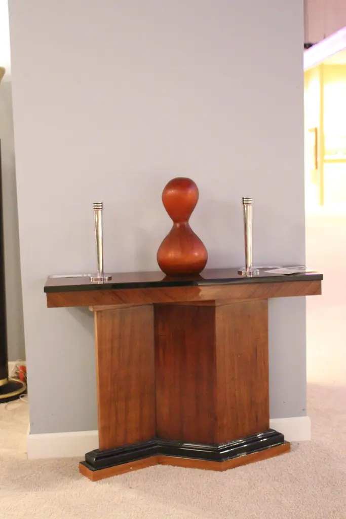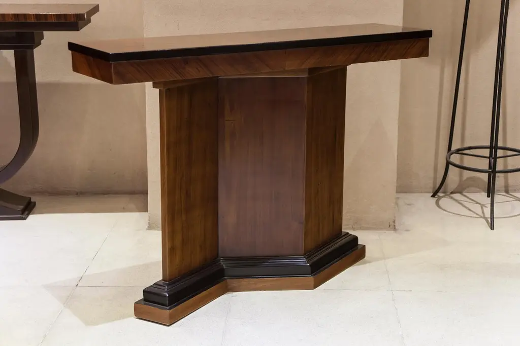 "Free shipping in florida" It was exhibited at Palm beach "American International Fine Art Fair (AIFAF)"Consoles Art DecoYear: 1930Country: FrenchWoodFinish: polyurethanic lacquerIt is an elegant and sophisticated console.You want to live in the golden years, this is the console that your project needs.We have specialized in the sale of Art Deco and Art Nouveau and Vintage styles since 1982.If you have any questions we are at your disposal.Pushing the button that reads 'View All From Seller'. And you can see more objects to the style for sale.Why are there so many antiques in Argentina?In the 1880 – 1940 there was a grate wave of immigration encouraged by the periods of war that were taking place.1st World War took place between 1914 and 19182nd World War took place between 1939 and 1945 The immigrants options were New York or Buenos Aires. Tickets were cheap and in Buenos Aires they were welcomed with open arms, as it was a country where everything was still to be done.Argentina was the country of new opportunities, labour was needed and religious freedom was assured, in many cases the of the family travel first until they were settled and then the rest of the family members join them.In the immigrant museum “Ellis Island Immigrant Building” in New York you can se the promotional posters of the boats that would take them to a new life.Between the years 1895 and 1896, Argentina had the highest DGP (gross domestic product) per capita in the world according to the Maddison Historical Statistics index, this situation arose due to the large amount of food being exported to European countries, which were at war.The Argentinean ships left the port of Buenos Aires with food, but they returned with furniture, clothes and construction elements, (it´s common to see this the old buildings of the historic neighbourhood of San Telmo, the beams with the inscription “Made in England)”, as well as many markets that were built in Buenos Aires, such us the San Telmo Market, whose structure was brought by ship and afterwards assembled in 900 Defensa Street. With the great influence of European immigrants living in the country, the children of the upper classes travelled to study in France, resulting in the inauguration of “La Maison Argentinienne”, on 27th of June 1928, in the international city of Paris, which hosted many Argentinians that were studying in Frace. It´s the fourth house to be built after France, Canada and Belgium, being the first Spanish-speaking one. Still in place today (17 Bd Jourdan, 75014, Paris, France). Many of the children of these wealthy families who attended international art exhibitions, museums and art courses abroad, took a keen interest in the European style. This is why Buenos Aires was at the time referred as “The Paris of South America”.Between the years 1890 and 1920 more than a hundred Palaces were built on Alvear Avenue the most exclusive avenue in Buenos Aires. Today some of these palaces have been transformed into museums, hotels and embassies.In the year 1936, the Kavanagh building was inaugurated, it was the tallest reinforced concrete building in South America.During 1994 the American Society of Civil Engineers distinguished it as an “international engineering milestone”, and it´s now considered a World Heritage of Modern Architecture.At the time was common to hire foreign architects such as Le Corbusier, who visited Buenos Aires/Argentina in 1929 and in 1948 he drew up the blueprints for a house built in La Plata City (which was declared a World Heritage Site).In 1947, the Hungarian architect Marcelo Breuer designed “Parador Ariston” in the seaside city of Mar del Plata. After an Argentinean student at Harvard University convinced him to come to Argentina. He worked on an urban development project in the Casa Amarilla, area of La Boca. The Ukrainian architect, Vladimiro Acosta, arrives in Argentina in 1928 and worked as an architect until que moved to Brazil.Antonio Bonet, a Spanish architect who worked with Le Corbusier in Paris, arrives in Argentina in 1937, where he carried out several architectural works and in 1938 designs the well-known BFK chair.Andres Kálnay, of Hungarian origin, made around 120 architectural masterpieces, among which the former Munich brewery stands out, he even made the furniture’s design. The German architect, Walter Gropius, director of the Bauhaus, lived in Argentina, where he wrote articles for “Sur” magazine and founded in Buenos Aires, an architectural firm with Franz Möller, who was also an architect, where he built two houses.At the same time several famous designers decided to immigrate to Argentina, among them we can find the well-known French designer, Jean-Michel Frank, who arrived in the country in 1940 and also worked for the Rockefeller family.Special pieces were made, which were sold exclusively in the country, such as the well-known German company “WMF”, who sold their products by catalogue, which were chosen by the ladies of high society in the list of wedding gifts, as well as the pieces designed by Christofle. The Swiss sculptor Alberto Giacometti, made special pieces for Argentinean mansions.In 1904 the first Jansen branch outside Paris was established in Buenos Aires, as the Argentinean clientele demanded a large amount of furniture, from the end of the 19th century to the mid-20th century.In 1970, the brand Rigolleau Argentina made pieces authorised by Lalique.The brands Maple and Thompson also set up shop in the country.The French plastic artist, Marcel Duchamp moved to Argentina in 1918-1919.Glass signed Gallé, Charder, Leverre, Schneider, Muller and other French firms. They were bought in flower shops and were given to ladies with beautiful floral arrangements. Some furniture manufacturers travelled to international fairs and bough the patterns to produce the furniture in Argentina, such as the furniture firm Englander and Bonta, who bought the patterns ins Italy.It is 