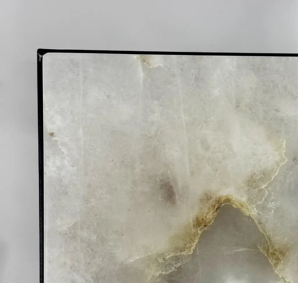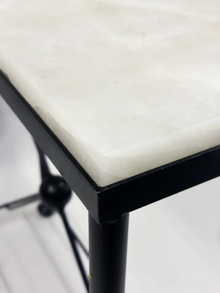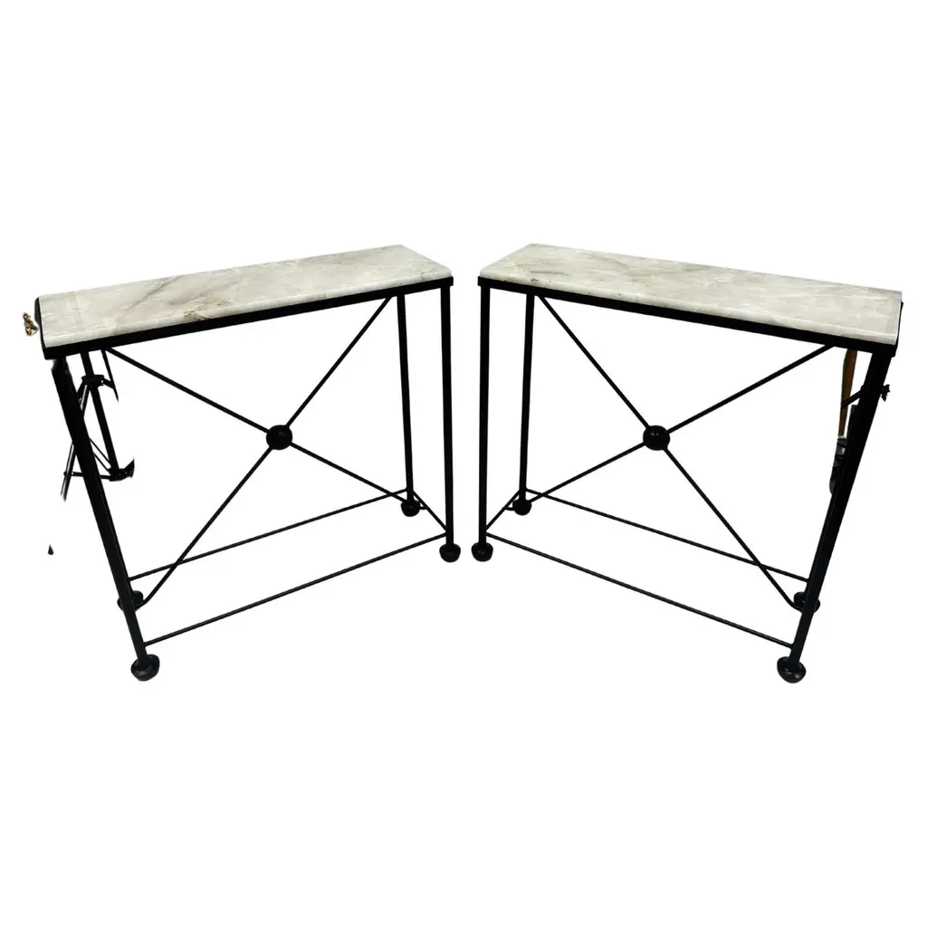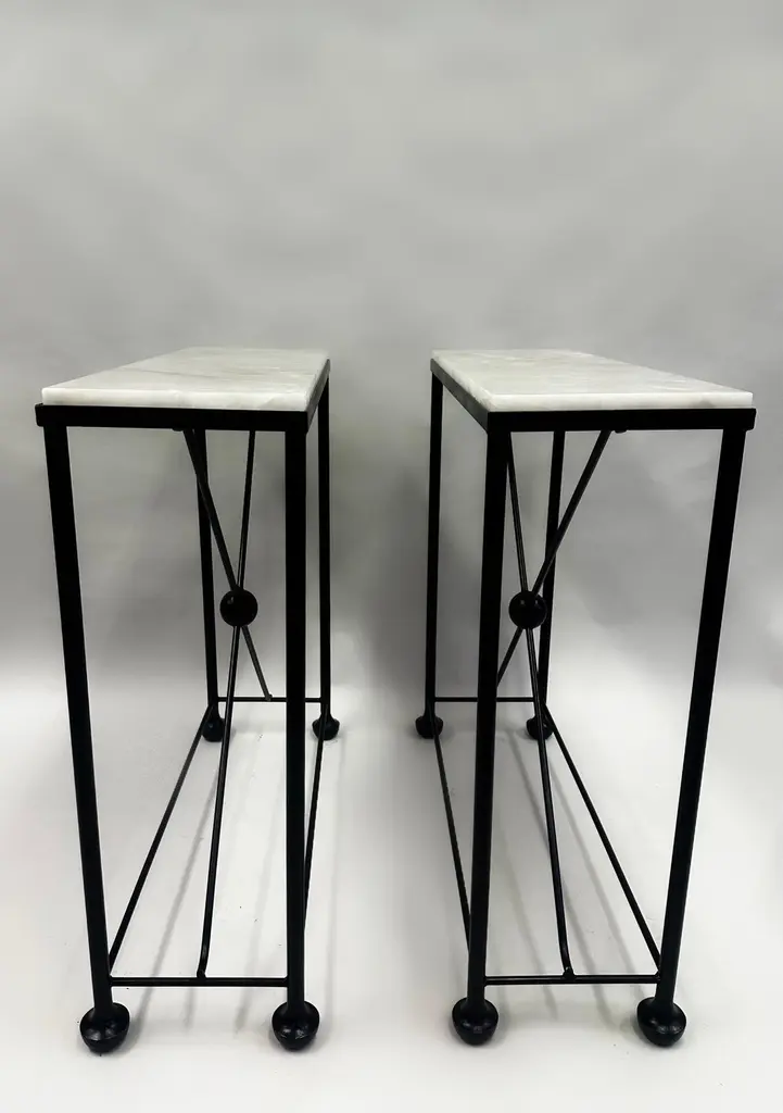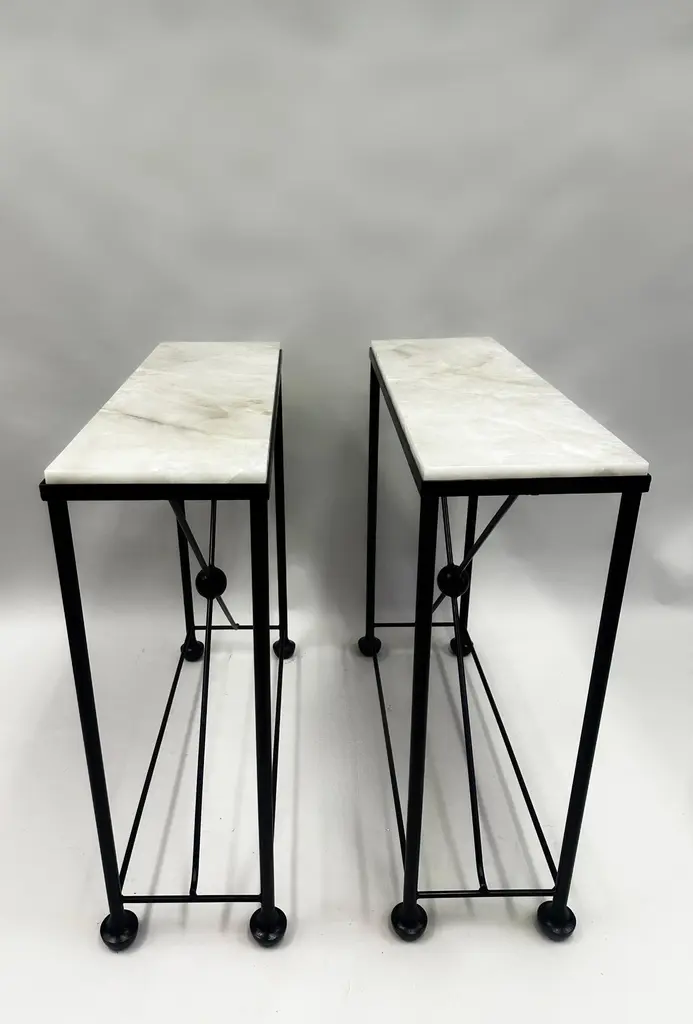 2 French Modern Neoclassical Rock Crystal & Iron Consoles, Jean-Michel Frank
