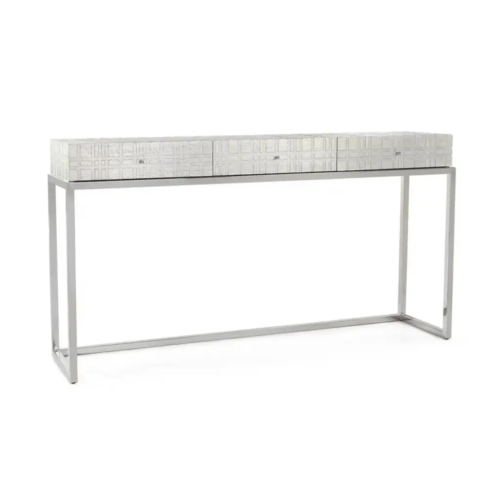 21st Century Hudson Console In Glossy Brass With Engraved Frame