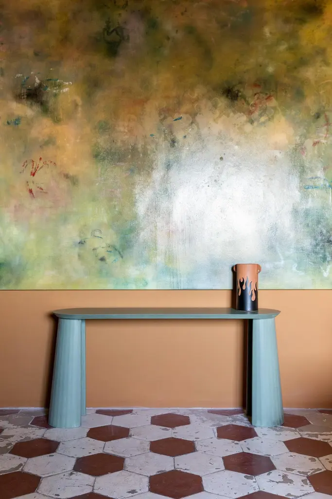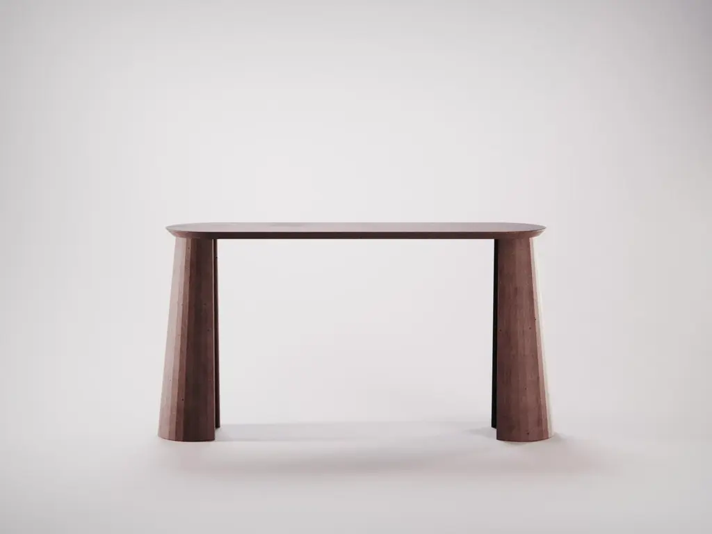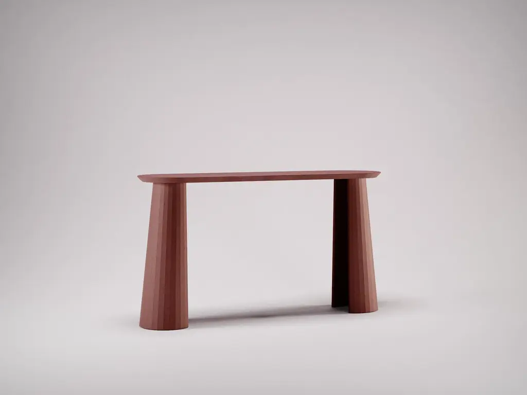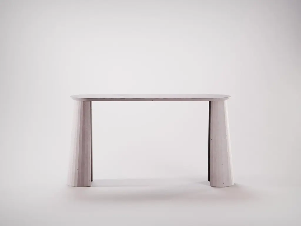Console table part of a collection of modular system in ultra high performing cement mortar. UHPC shelves and abutment colored in the mixture and sandblasted. Available in three different sizes and eight colors: brick, silver, powder, cream, fir, dark, chocolate, ink and ultra marine. Each item is hand treated and is protected with water repellent products to reduce the absorption of oily substances and to minimize the making of stains.Surrealism, primitivism, metaphysics and brutalism. Art together with architecture and design build a scenario of inspirations and continuous references through which the material rises to an expressive language, ready to welcome and rework formal suggestions of different origins.Fusto is the series that introduces the new design approach. As in classical architecture, Fusto is the column that holds tables, consoles, bookcases and pedestals. Volumes and proportions are integrated in a timeless geometry, enriched with facets that make the color vibrate in a game of lights and shadows.Fusto is eternal architecture. Our products are easily recognizable by the exclusive treatment of the material and the passionate quest for lightness and style.The artisanal handicraft, the use of modern materials and innovative techniques, with a completely “Made in Italy” production, further enhances the prestige of Italian design.The range of colors presented is indicative and may be subject to technically unavoidable tone tolerances caused by the moment in which the pieces are castedEach piece is a unique; made by hand no two are the same.
