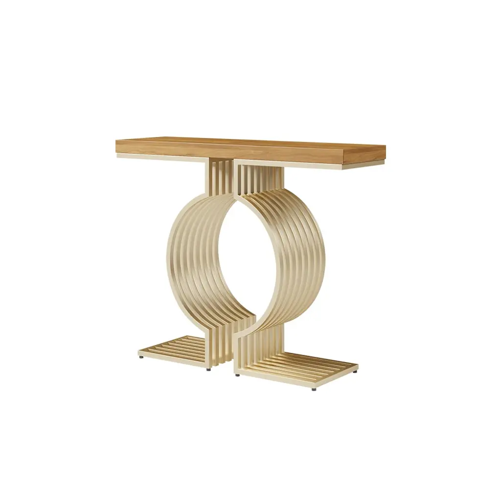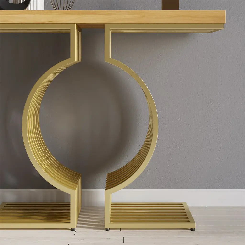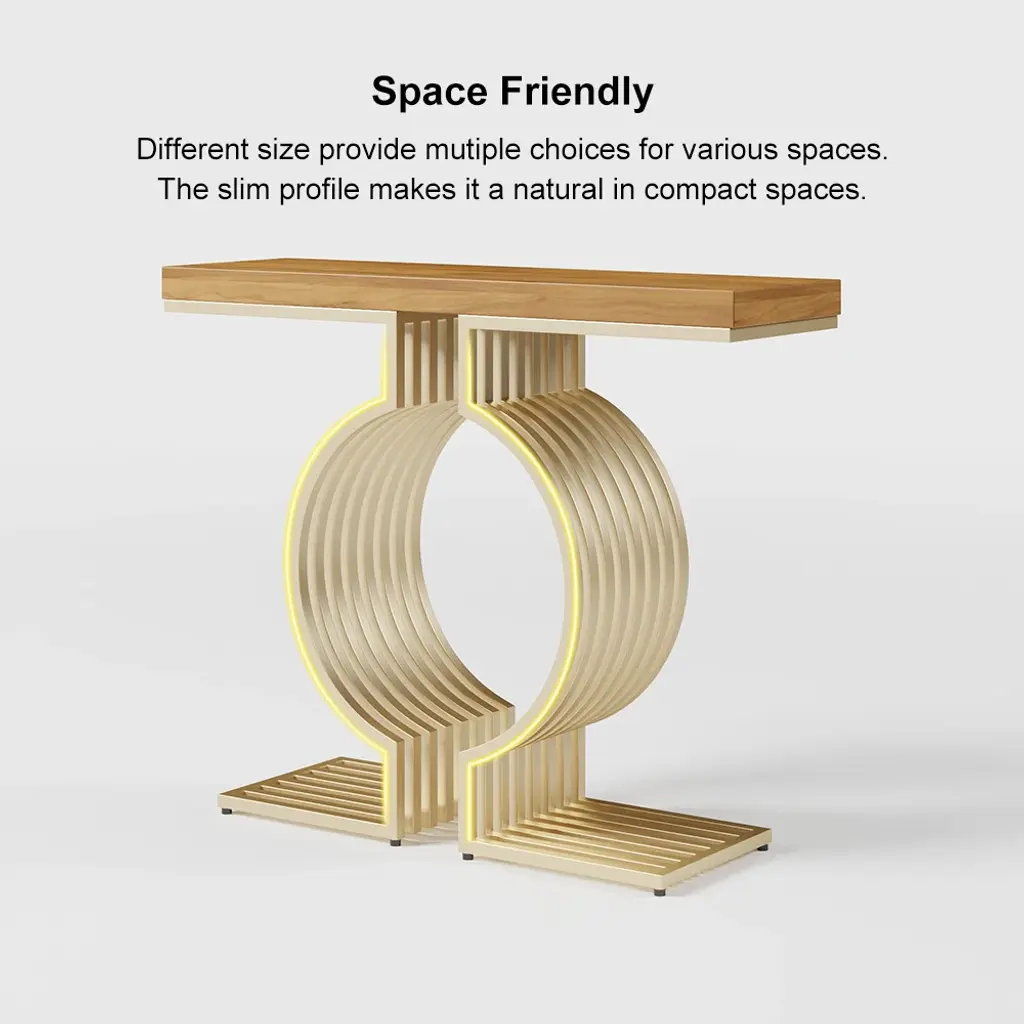 Upgrade your space with this modern console table featuring a sleek natural top and a geometric gold base. Made from high-quality materials, it's perfect for entryways, hallways, or living rooms. Easy to assemble with detailed instructions included.