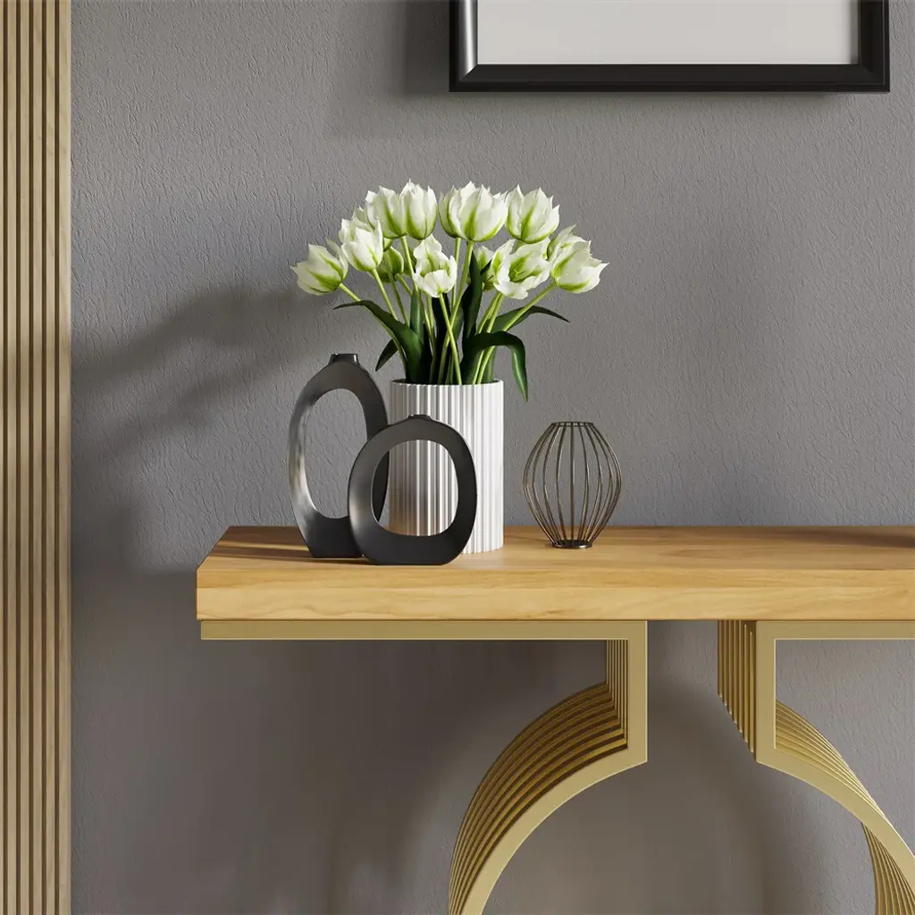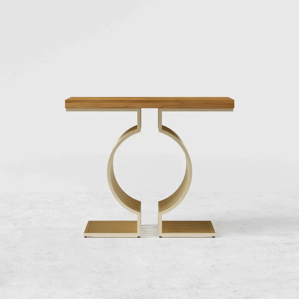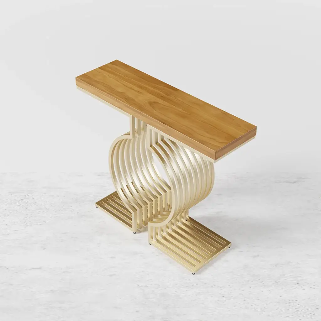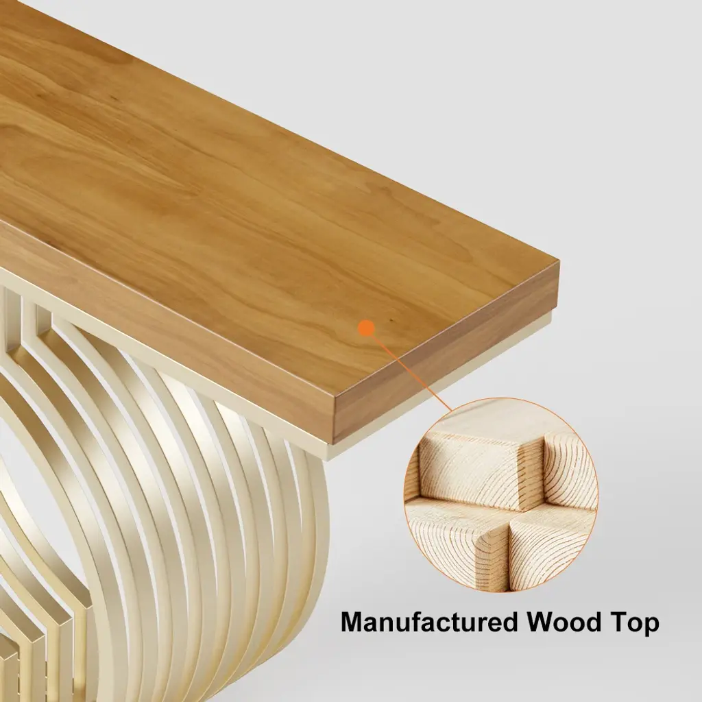 Upgrade your space with this modern console table featuring a sleek natural top and a geometric gold base. Made from high-quality materials, it's perfect for entryways, hallways, or living rooms. Easy to assemble with detailed instructions included.