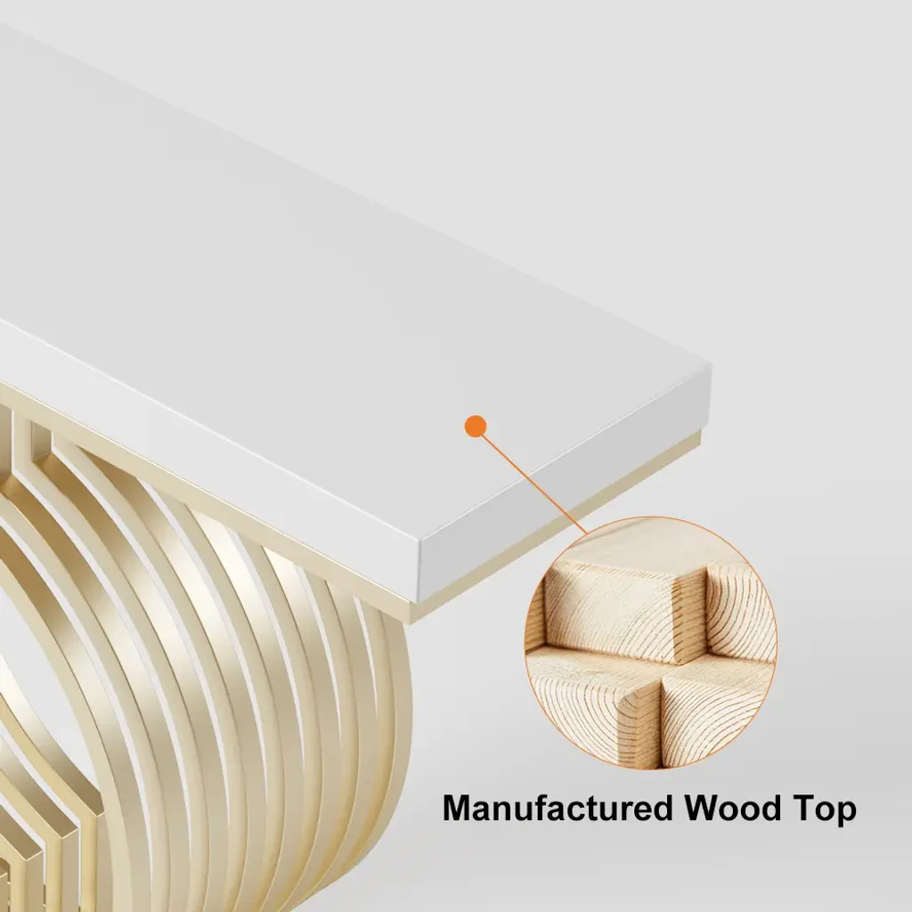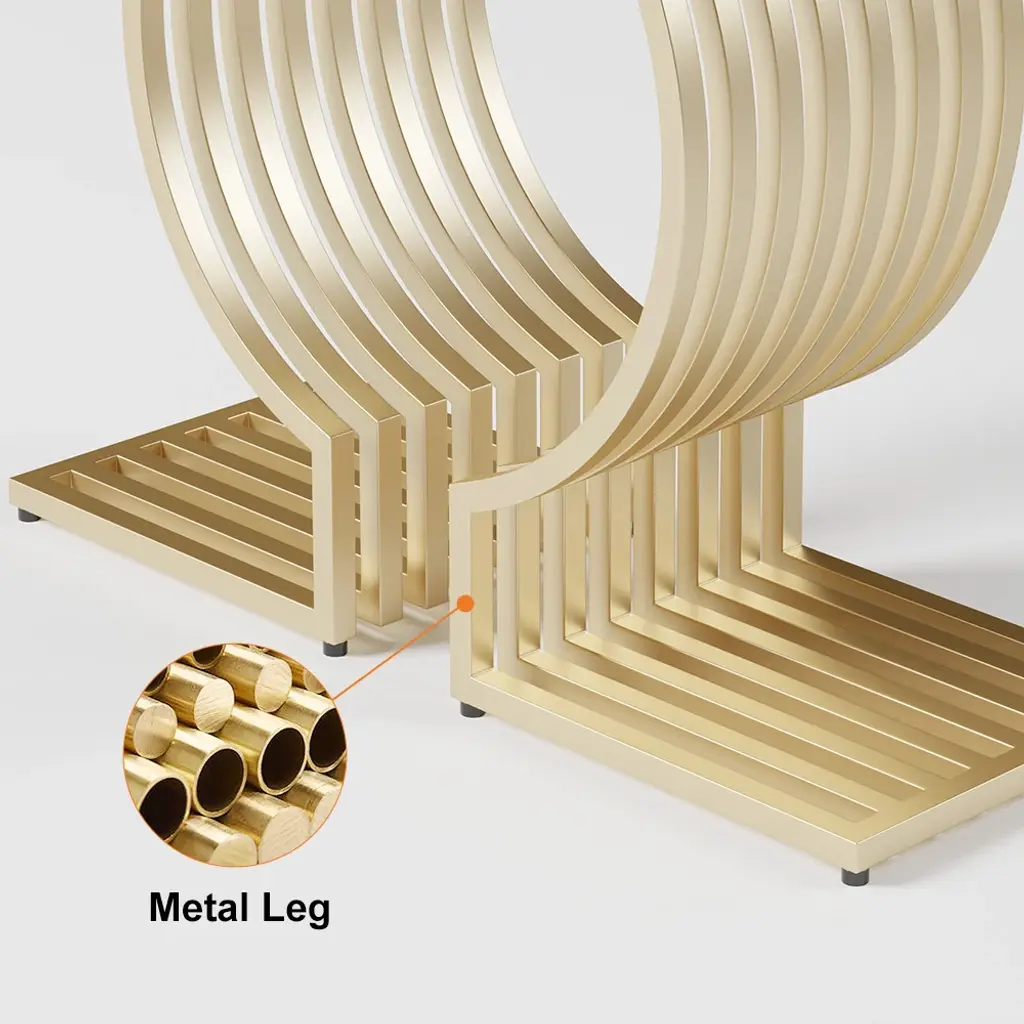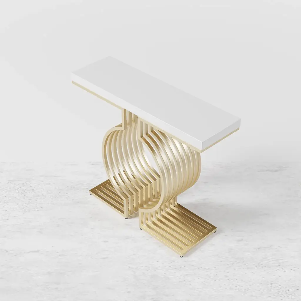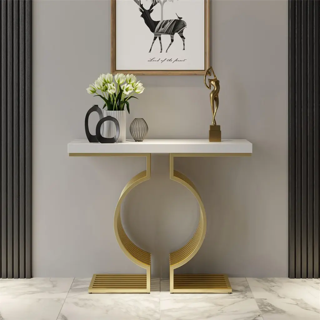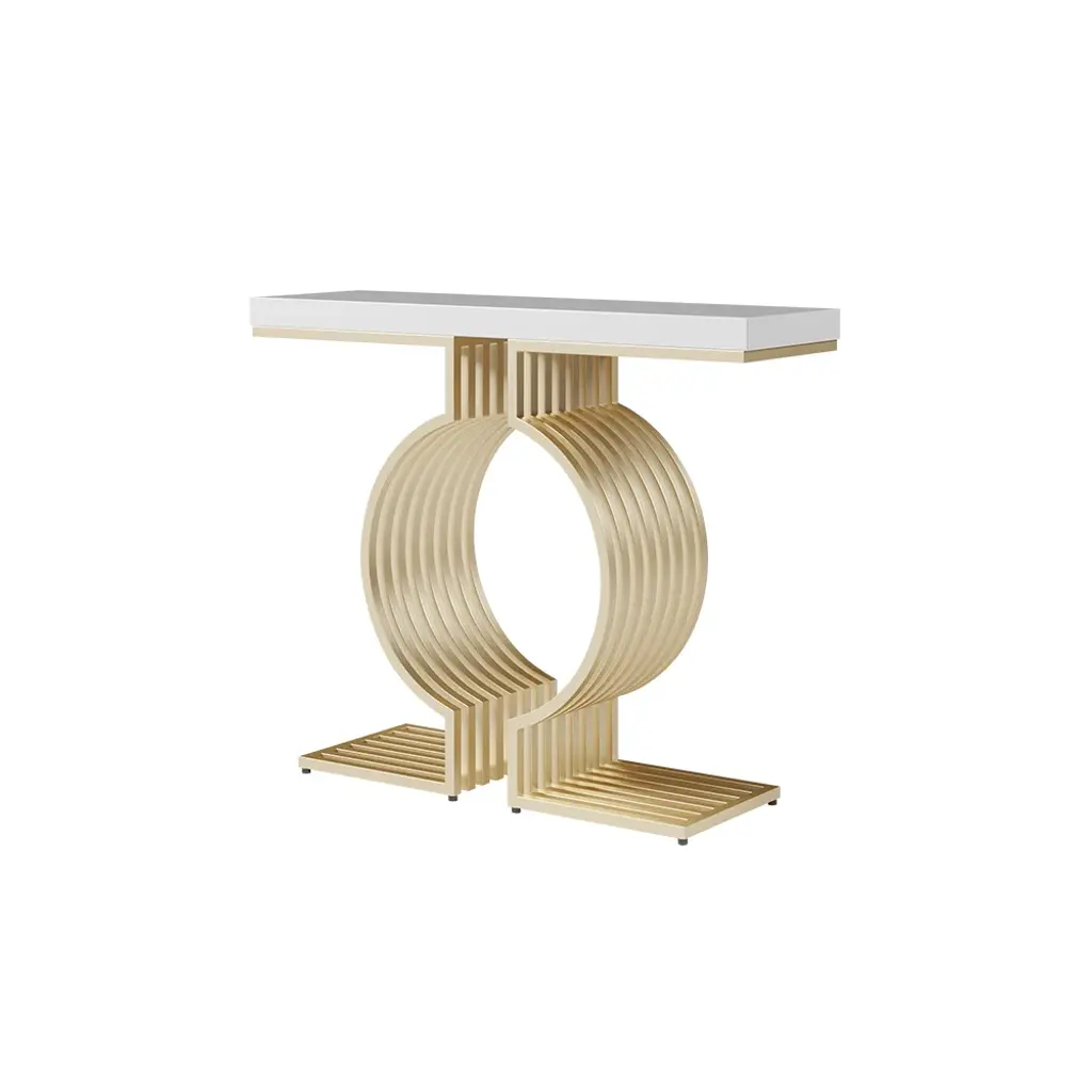 Upgrade your space with this modern console table featuring a sleek white top and a geometric gold base. Made from high-quality materials, it's perfect for entryways, hallways, or living rooms. Easy to assemble with detailed instructions included.