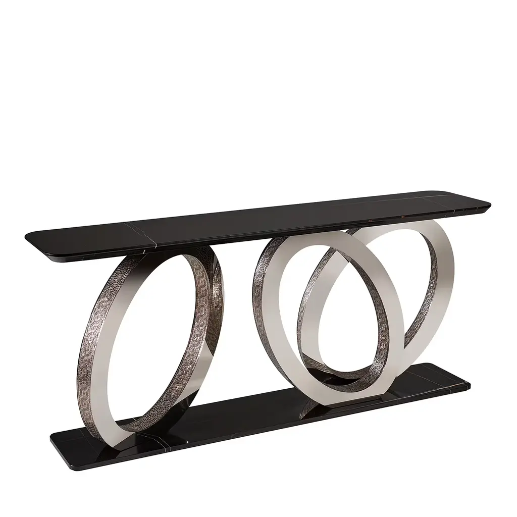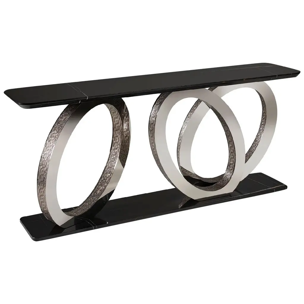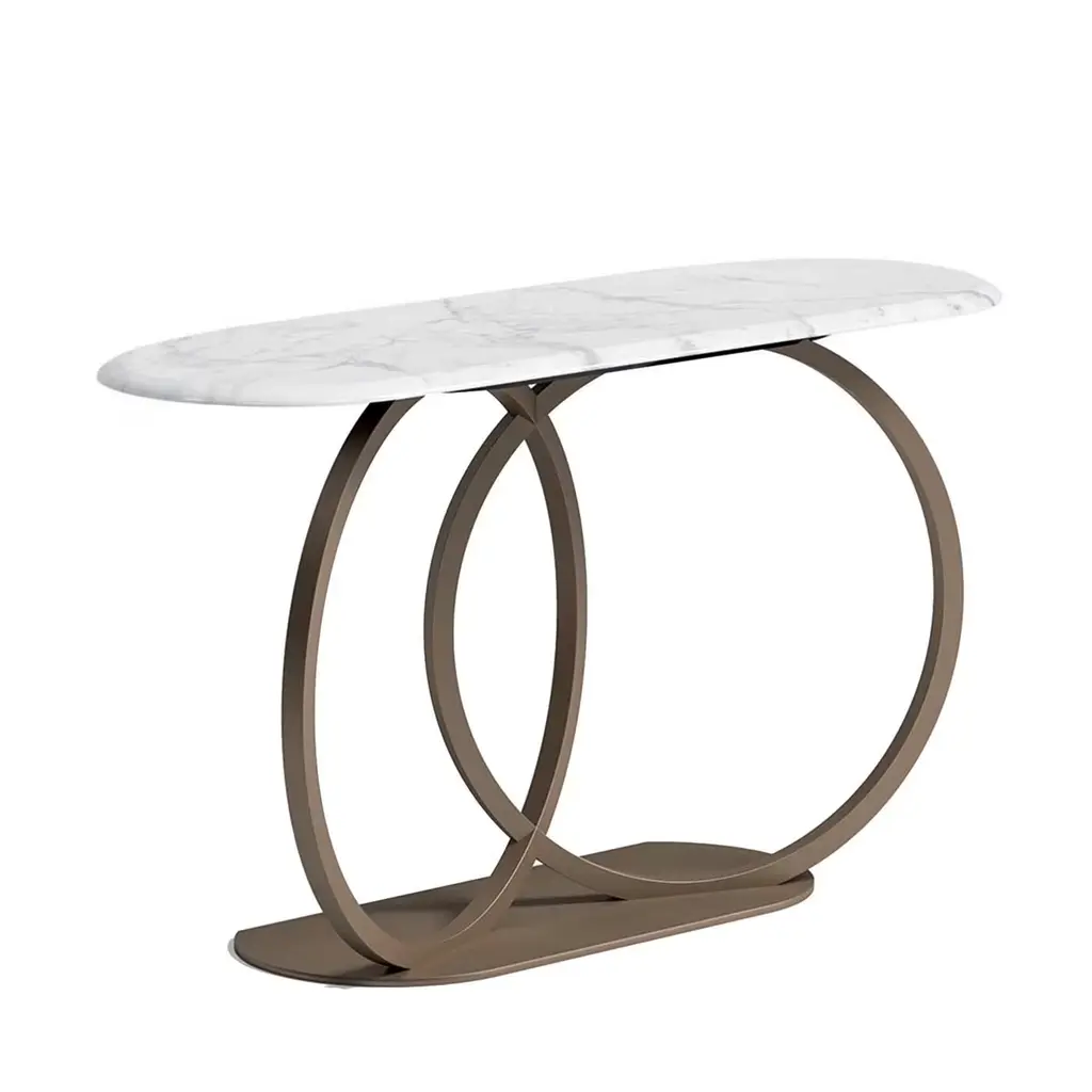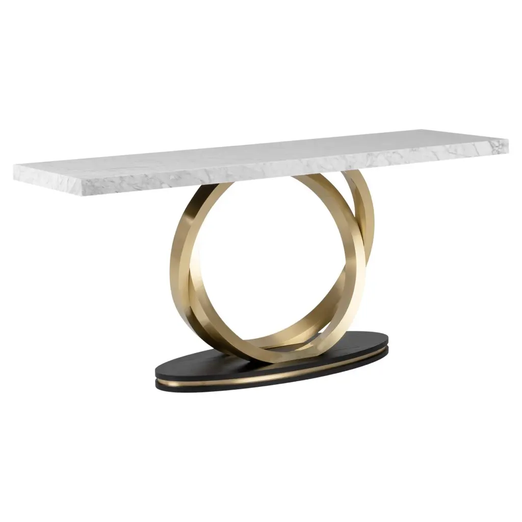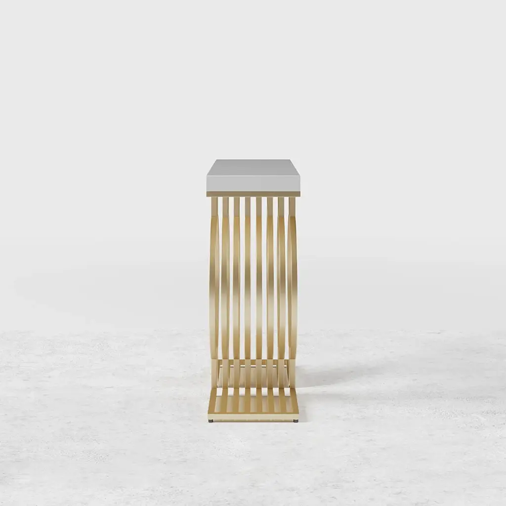 Upgrade your space with this modern console table featuring a sleek white top and a geometric gold base. Made from high-quality materials, it's perfect for entryways, hallways, or living rooms. Easy to assemble with detailed instructions included.