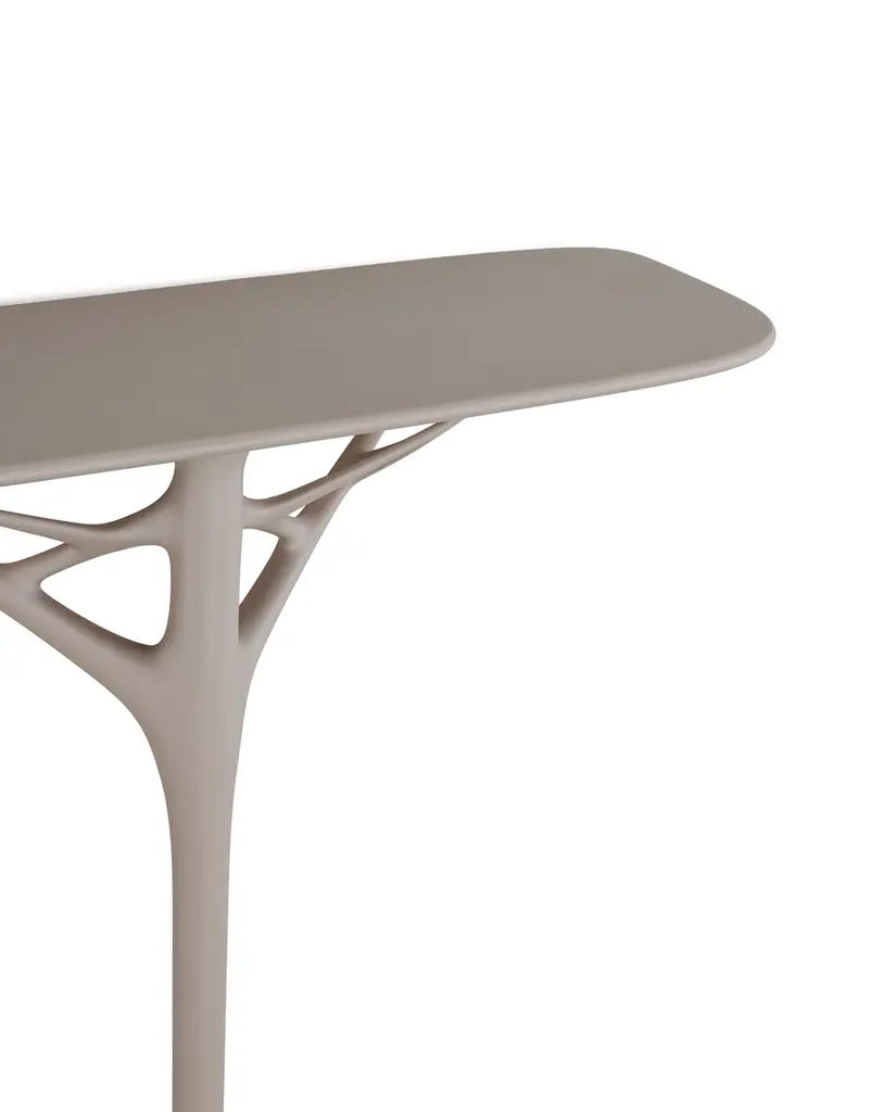 Philippe Starck continues his exploration of new and sustainable materials, in search of the pure and basic form of the graphic design element. A.I. CONSOLE is proposed as an idea of elegance of artificial intelligence in search of the minimum, the ground zero of style. The console that takes up the already recognisable lines that characterise the family is a unique piece of furniture that leaves an uncluttered yet characterful mark on entrances and hallways thanks to its styling with a central leg. It is ideal for both residential and contract environments, with several colour variations: white, grey, green, terracotta and black.The added value of A.I. lies in the fact that it is the first product family conceived by Artificial Intelligence in response to input received from the designer (Philippe Starck) and the know-how of the company (Kartell). Specifically, creative thinking, company know-how and artificial intelligence have merged to develop a chair model based on an algorithm that respects the original brief of the designer and the company a comfortable product with the structural strength and solidity required while upholding one of Kartell’s main values: to be an injection-moulded industrial product of outstanding aesthetic quality.