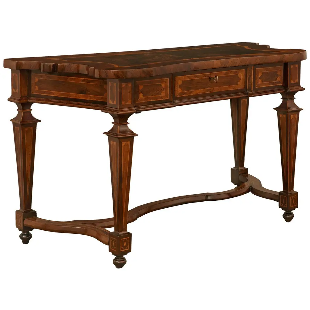 A Pair Of Italian 18th Century Louis Xiv Period Walnut And Olivewood Consoles