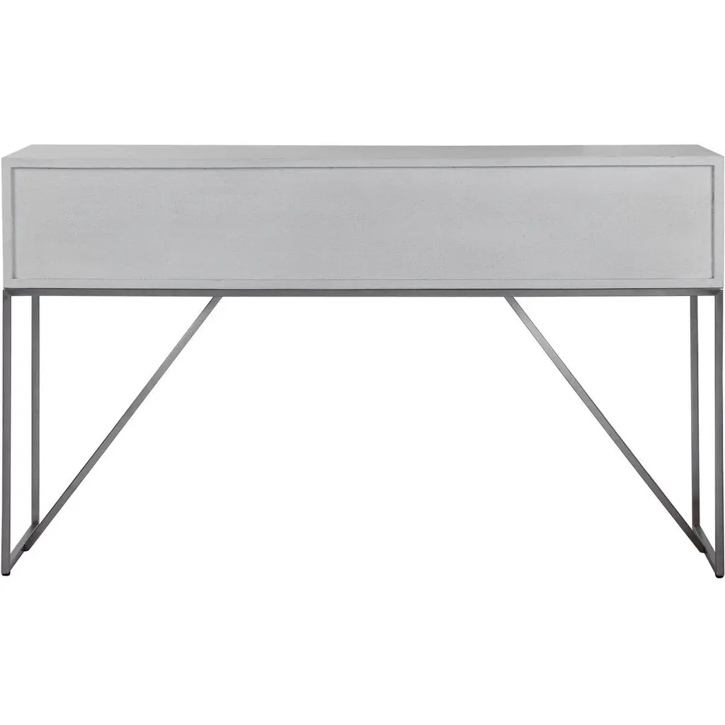 Abaya 54 Inch Soft White And Light Gray With Brushed Nickel Console Table