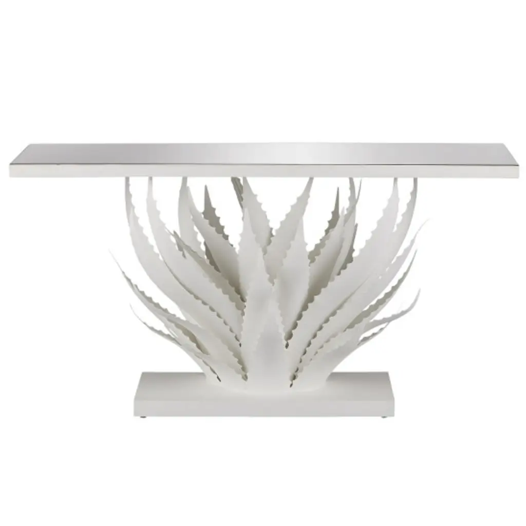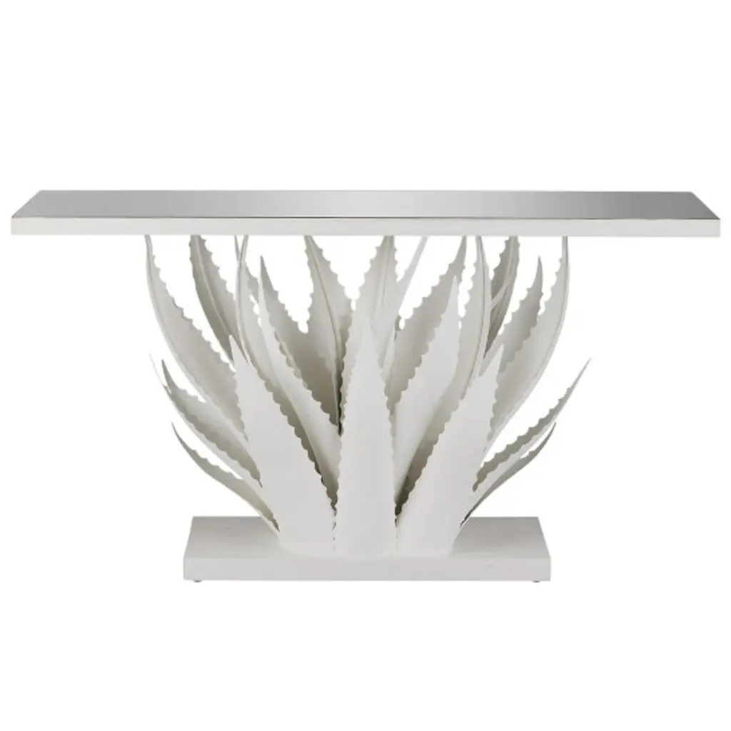 The Agave Console Table was inspired by the flourishing plant of the same name, whose spiky, leathery fronds curl up from the ground just as the oversized leaves on this console table do. “My love of the Agave plant, of which hundreds of varieties flourish in the Yucatan, has inspired me for many years,” says the table’s designer Marjorie Skouras. Her passion for the Yucatan peninsula, the surroundings in which she lives and through which she translates the flora and fauna into dynamic products in her studio, shines in this wrought iron table.