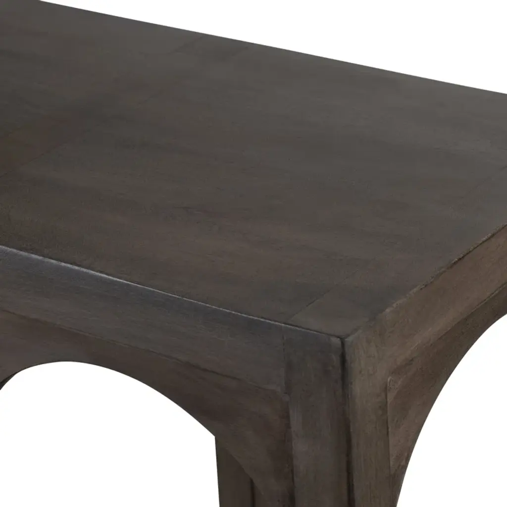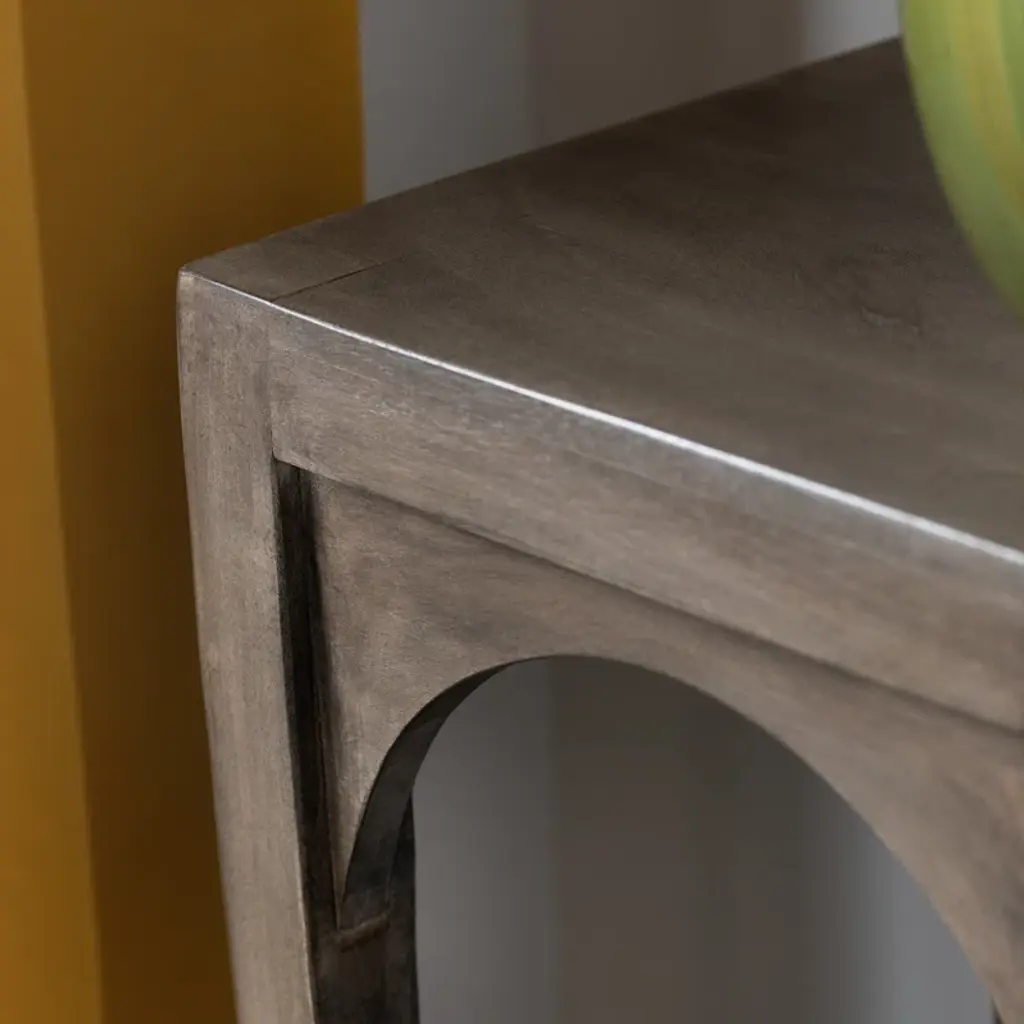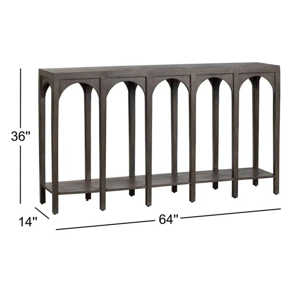 Designed with mango wood, this console table in a light gray finish will look right at home in our space. The durable natural wood grain variation showcasing the arch style design brings distinctive elegance to any room.