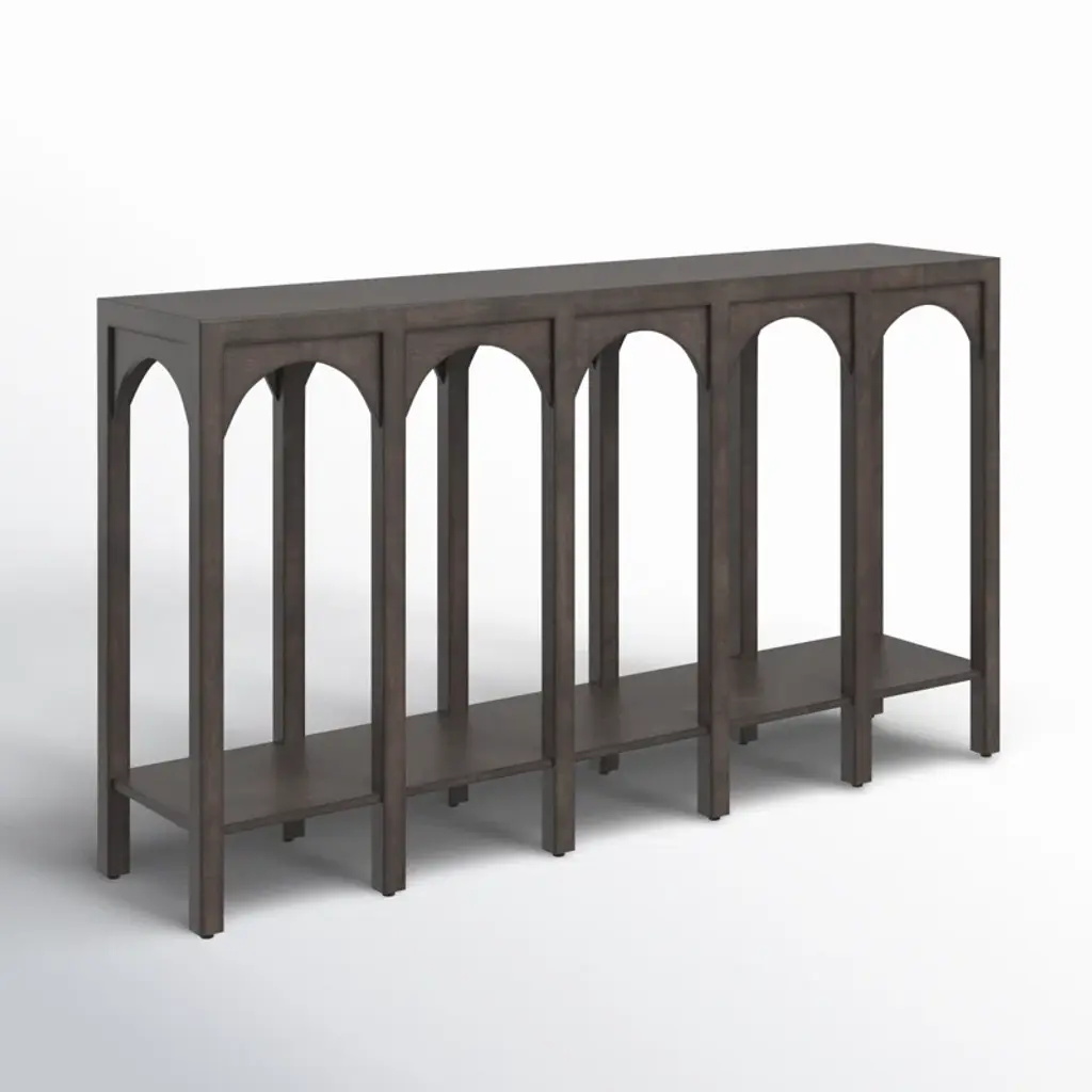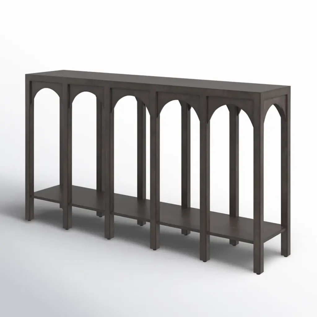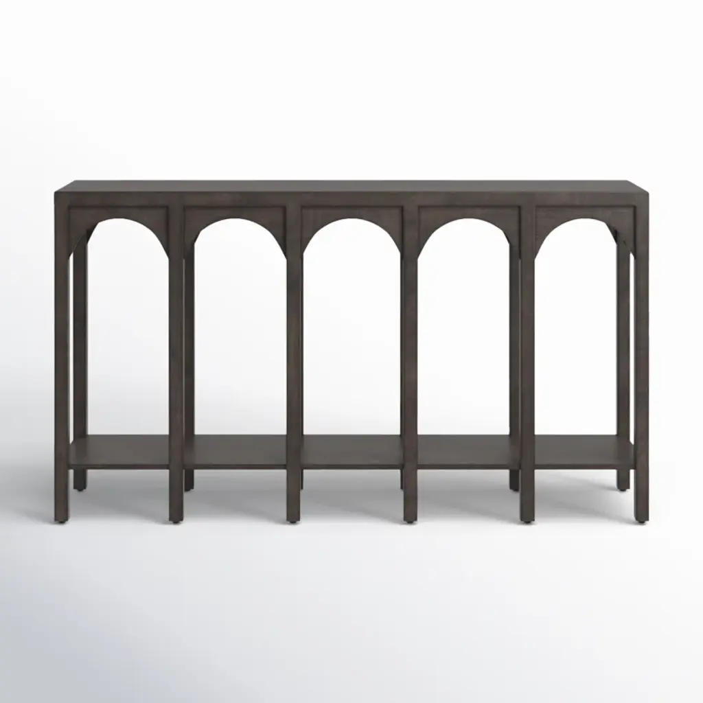 Designed with mango wood, this console table in a light gray finish will look right at home in our space. The durable natural wood grain variation showcasing the arch style design brings distinctive elegance to any room.