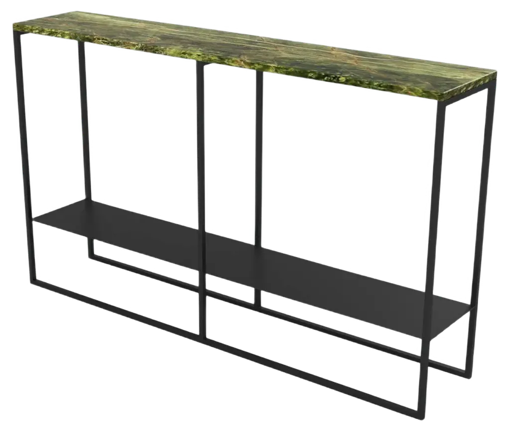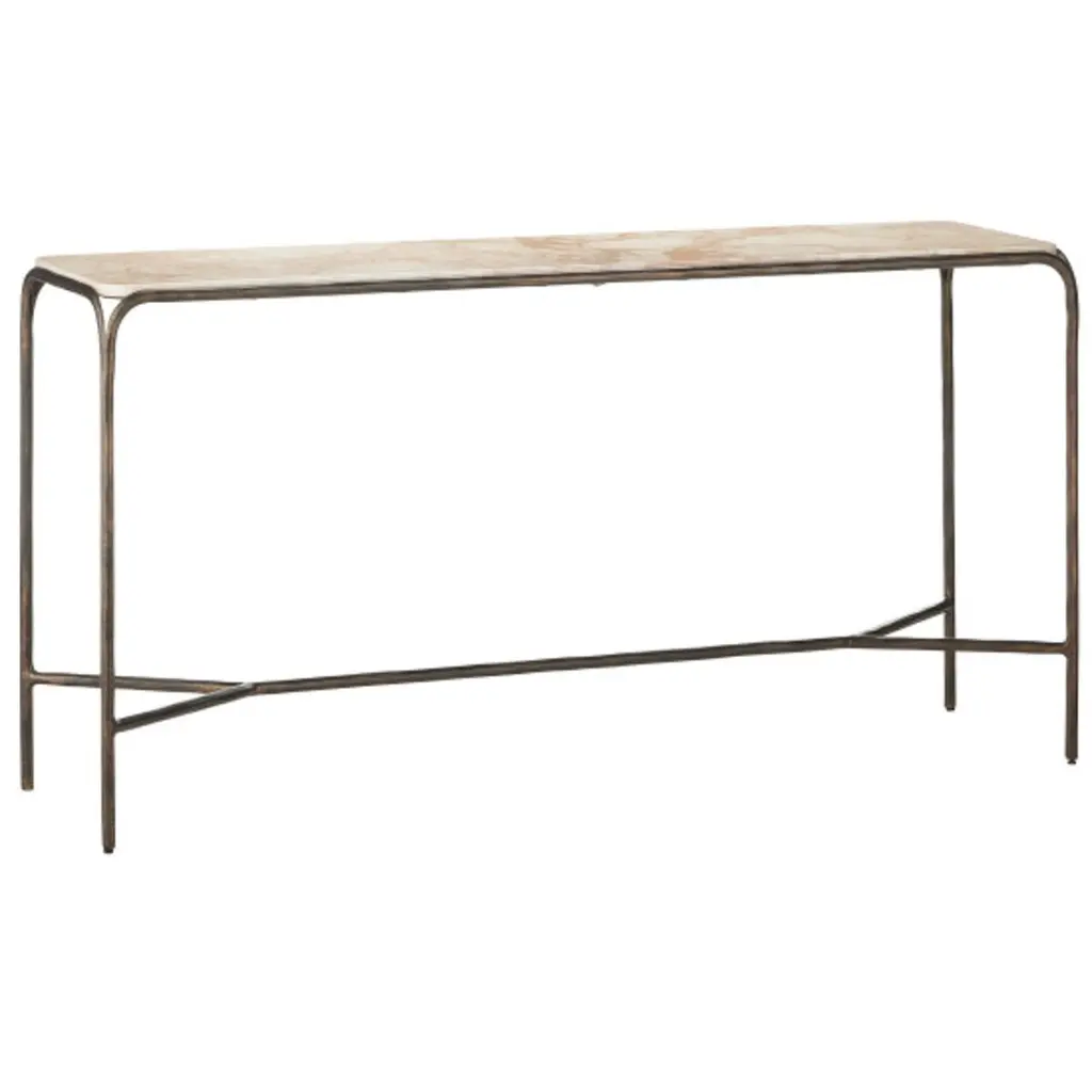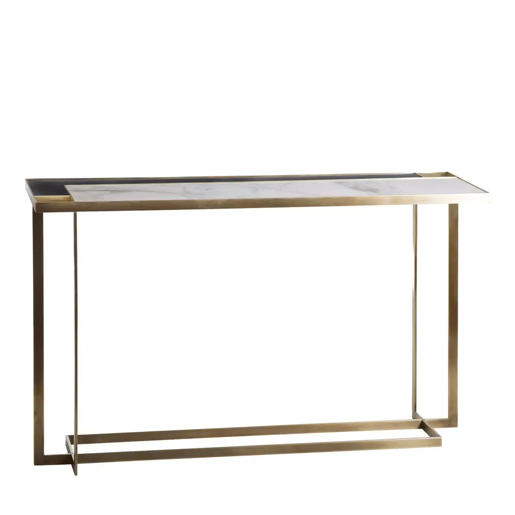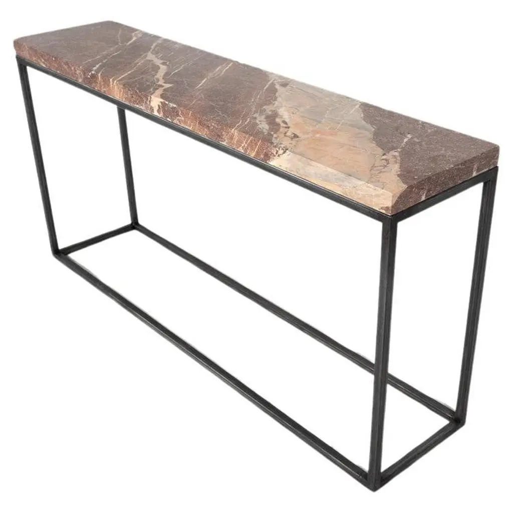The Ambrette console table is characterised by the successful combination of an amber marble top on a used-effect metal frame. Decorative and useful, this slim and narrow console table fits easily into any interior.15 mm thick amber marble top.Used-effect metal structureEach piece is unique, the veining is more or less marked