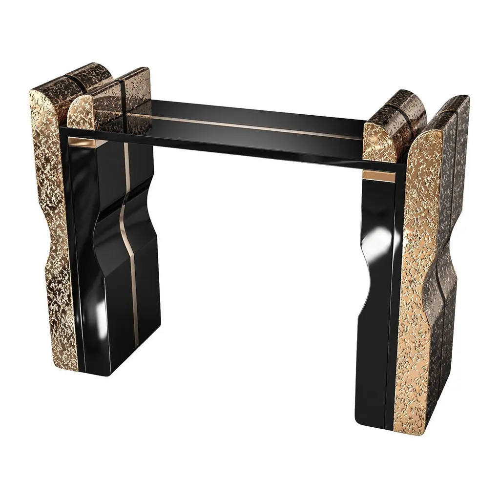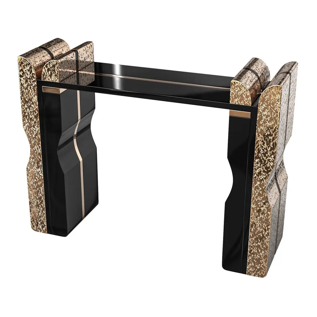 "Amendola" Console with Bronze and Stainless Steel, Handmade, Istanbul.Designed by Hasan Samet Bizimyer.Design, Art, Innovation.Bizimyer Furniture Presents.Bizimyer Art / Design.The world needs icons. Those exceptional few that stand clear of the rest. For these individuals who inspire greatness, only the purest expression of Bizimyer Furniture will do. An icon like no other.Unparalleled elegance, beauty and presence.The purest of retreats. The most luxurious touches abound.The world’s finest A grade hides. Hand-crafted wood veneers. Distinguished people is cocooned by the finest materials and impeccable workmanship. This is a truly unique space, defined by unparalleled comfort.Refined design heritage. This work of art will add value to your life with the precious handwork of Istanbul's best masters."Bizimyer Furniture" is a "Bizimyer Art / Design" company. The design company was founded in 2006 by Hasan Samet Bizimyer.Hasan Samet Bizimyer focused on innovative designs and brought them to life.Now, via 1stDibs, for dear art lovers, it offers carefully crafted timeless and exclusive design furniture.We only sell through 1stDibs. Beware of imitation products. You will do the messaging with Hasan Samet Bizimyer.Our products are negotiable.