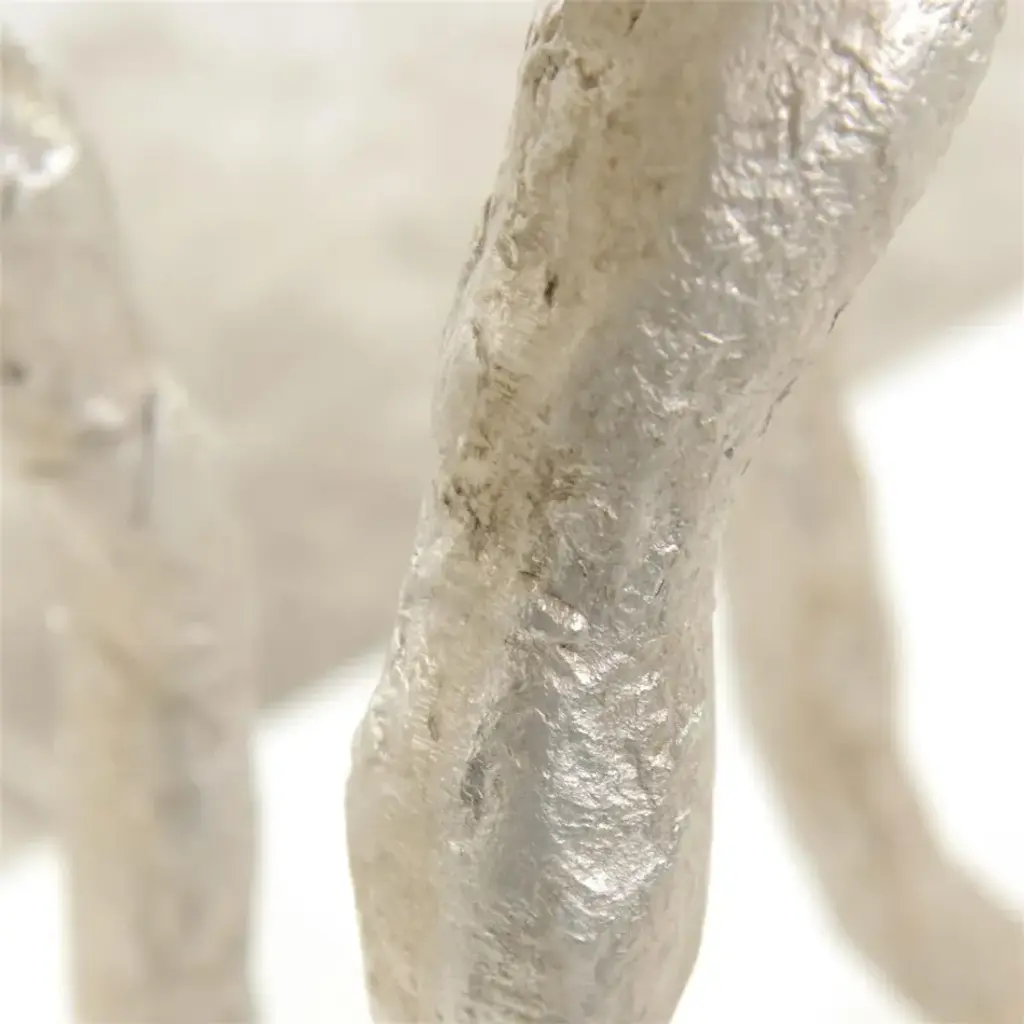 The Anello Console Table showcases an innovative design that blurs the line between furnishing and artistic sculpture. A rectangular wooden tabletop features our popular Tiza Gesso finish, imbuing the piece with a charming light gray tone that greatly elevates the mood of an interior space. The tabletop is matched by a rectangular base, providing stability and cohesion to the piece. The heart of this design lies within three textural rings of aluminum that display a gorgeous Washed Silver finish, matching the neutral tones of the wood while contributing a tasteful sense of luster to any décor.