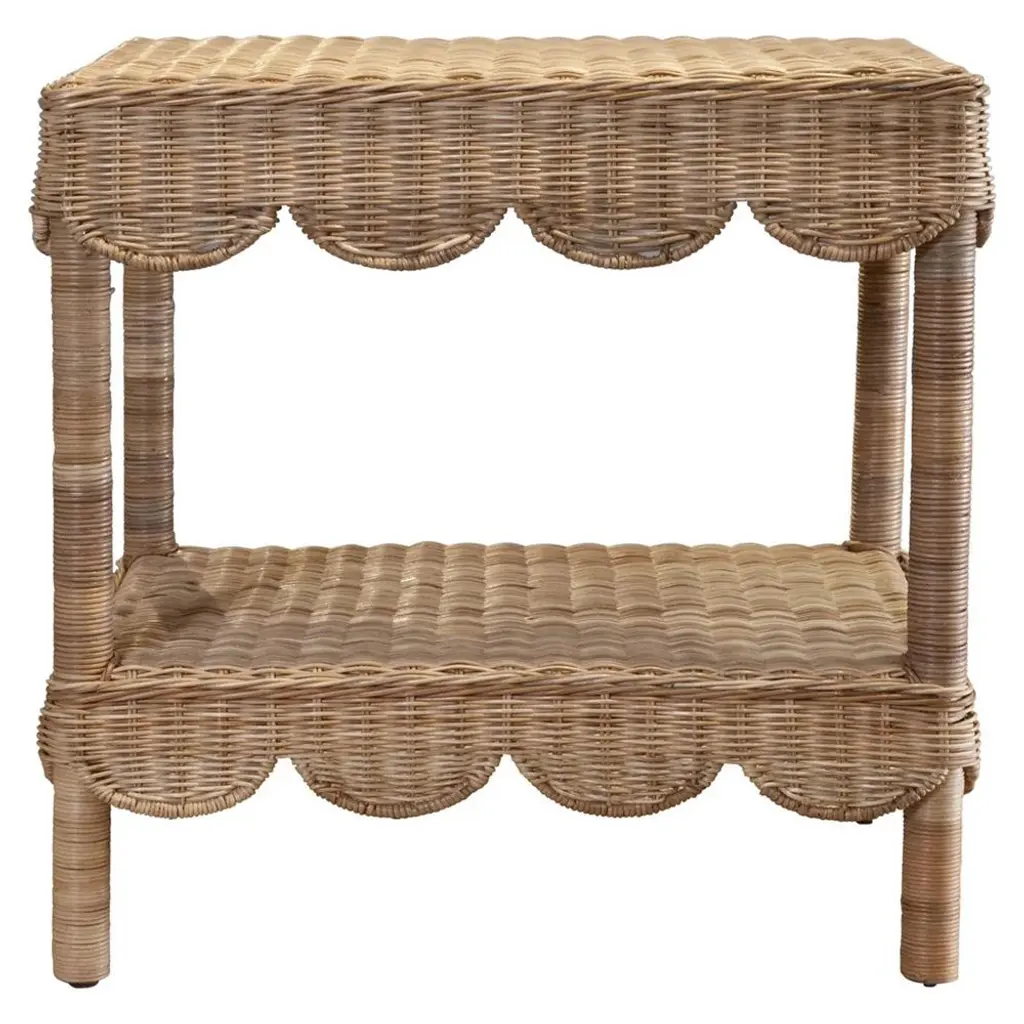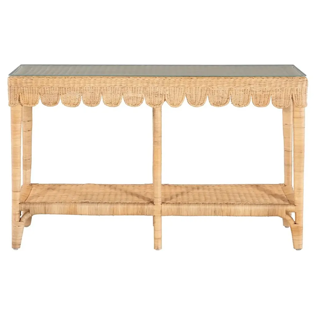 Anissa Coastal Beach Natural Woven Rattan Rectangular Scalloped Console Table