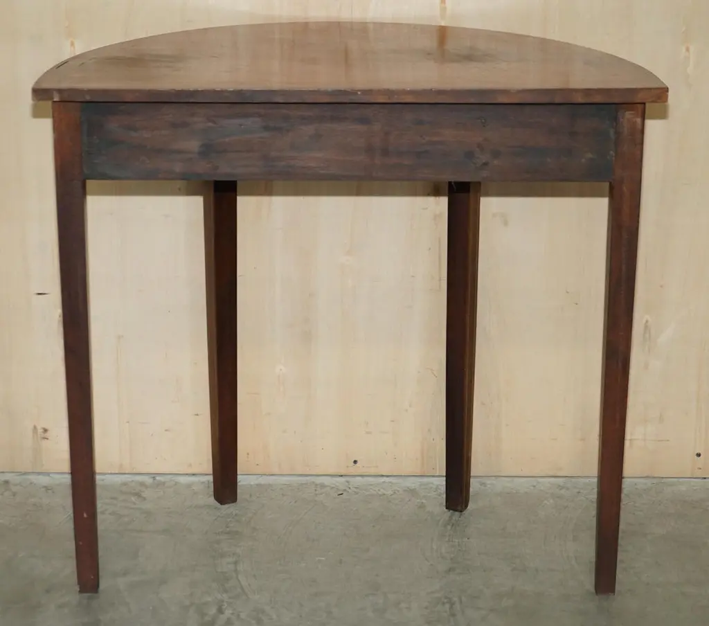 Antique Victorian Hardwood & Walnut Demi Lune Half Moon One Drawer Console Table