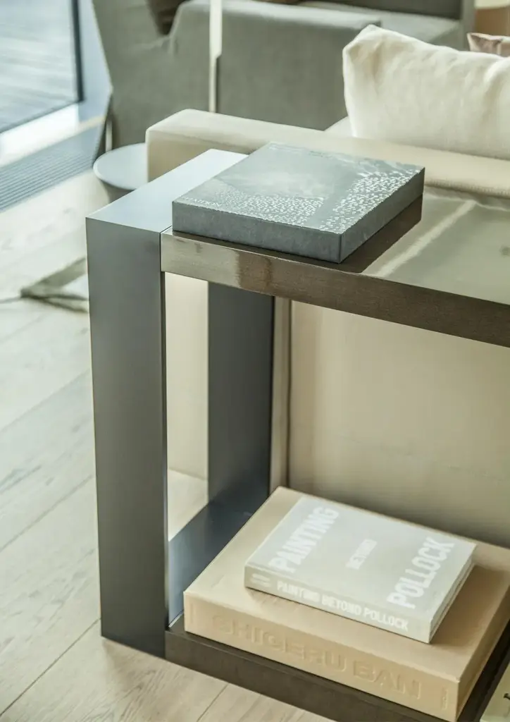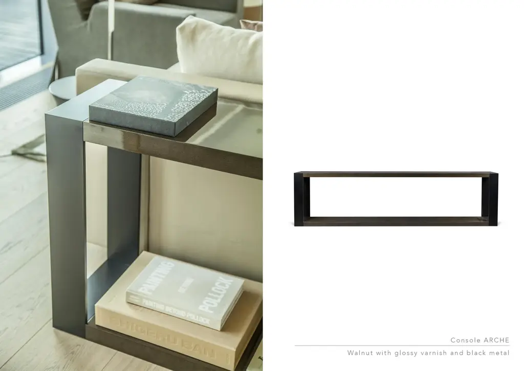 Arche console by lk edition dimensions: 260 x 36 x h 71 cm materials: sycamore tinted with a glossy varnish, and black metal. It is with the sense of detail and requirement, this research of the exception by the selection of noble materials and his culture of the french know-how, that lk has built up its principles and set up his skills. Lk will meet your expectations and your requirements in residential, hotel, trade, yachts \. And custom-made furniture.
