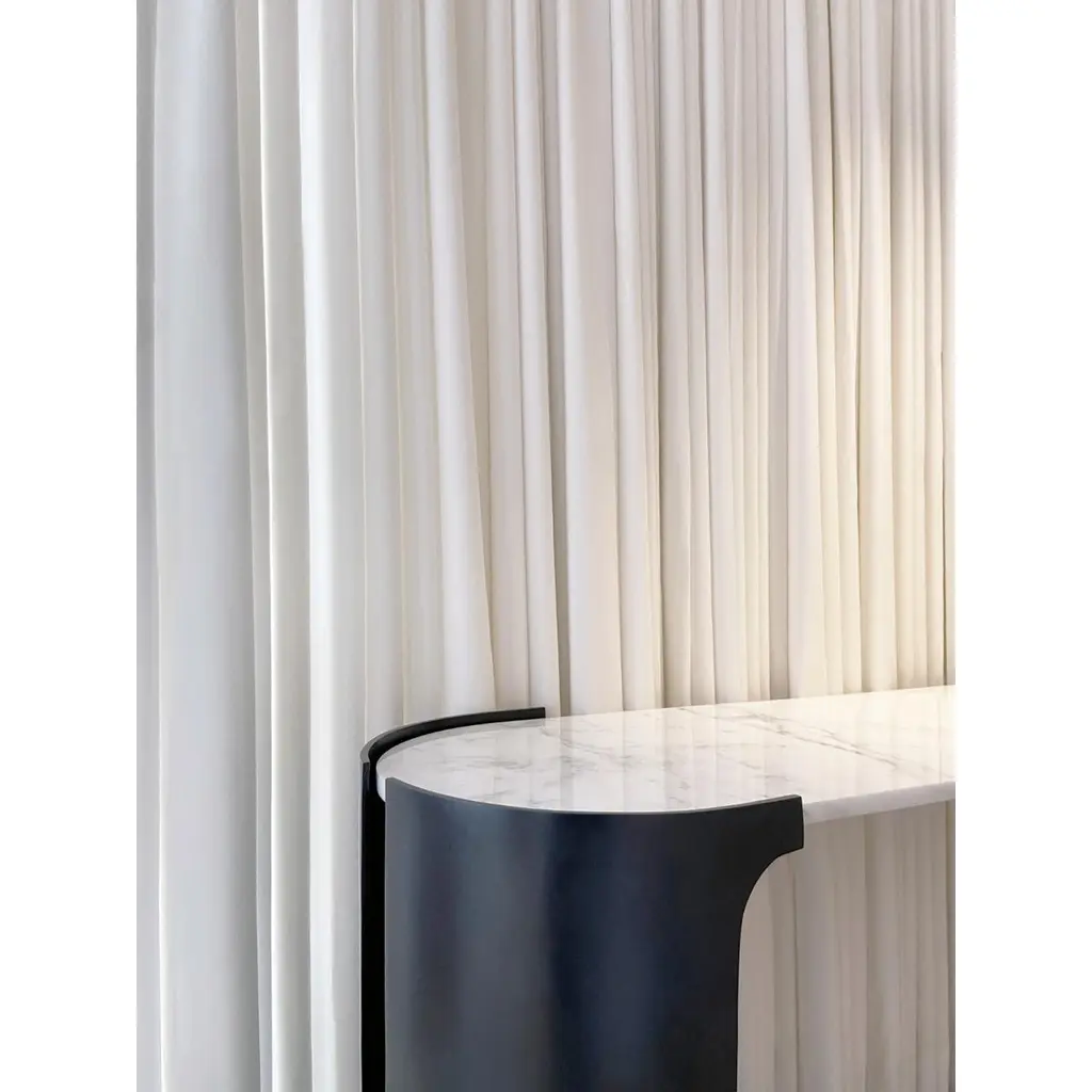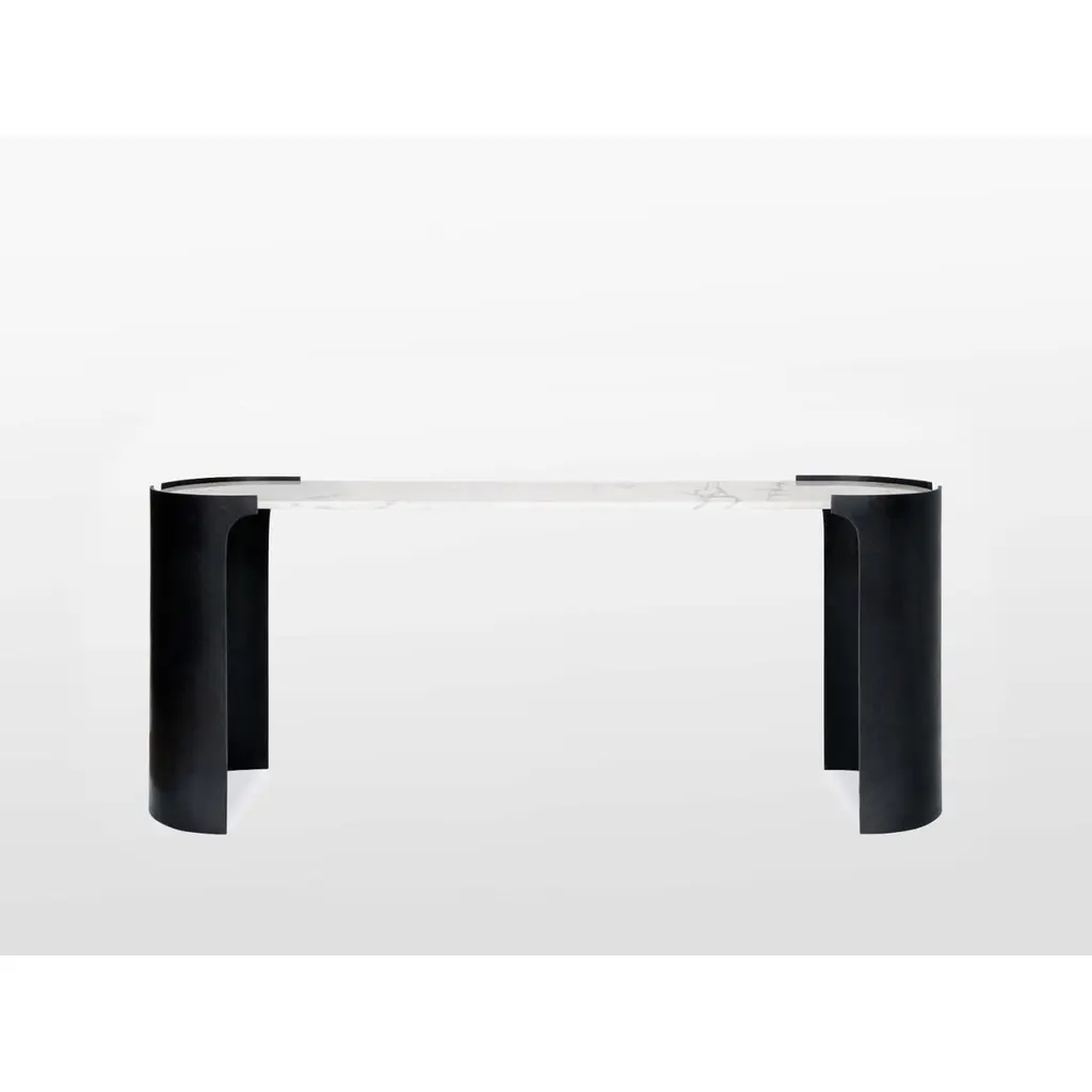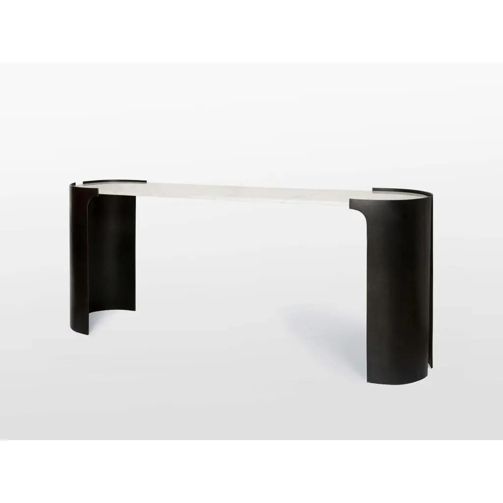 Ares Console Table in Black Patinated Cast Bronze & Marble by OZA DesignDimensions: D 43 x W 183 x H 75 cm. Materials: Cast bronze and marble.Available in different marble options. Prices may vary. Please contact us.OZA is not a style, it is a philosophy. It is a state of mind, a way of seeing, a way of being.From holding a pen to drawing a line, it is in everything we do.OZA can’t be framed. It exists in every detail in its projects, from the woodgrain of its furniture to the glow of its lights. From the softness of the fabrics and the sharpness of the metal to the warmth of the feeling it instils.OZA can’t be defined by a style, it always reinvents itself and translates atmospheres into physical expressions.We focus on distilling the superflux into the work on the essence. What matters isn’t the shine, it is the equilibrium and the resonance of the whole.We do not design simply to meet an expected aesthetic. We voluntarily disrupt your preconceptions to produce a work that is as unique as the places we transform.OZA is born out of a desire to create unforgettable design experiences and to develop its own unique language away from the inexpressive contemporary styles.OZA isn’t mine or yours, it unites all parts to create a ‘oneness’.With an ever-expanding scope of work including architecture, interior design, concept creation, FF&E design, and styling, OZA simultaneously disturbs and redefines an era of spatial experiences grounded by the desire to tell authentic stories.We thrive to meet our client’s needs with unparalleled design solutions that yield emotive, human-conscious, and functional responses through the highest quality of design. We created OZA because we believe in the human need for emotion and connection in their environment.We approach each project with desire to provide our clients with a bespoke and timeless creation, tailoring their experience from inception through to completion.