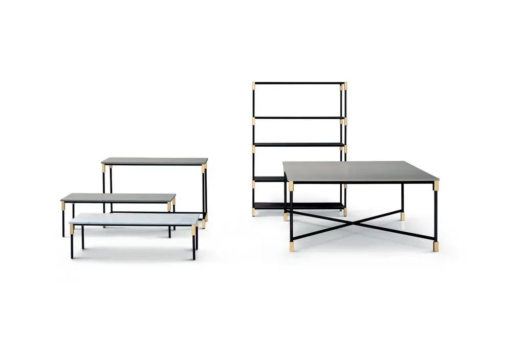 Match project is characterized by the brass joint, that joints the structure with the shelf, becoming a precious and decorative element. The stackable system allows to create, with the same elements, small tables and bookcases of various heights, console and table.Additional information:Materials: White Carrara marble top with black lacquered metal base and black protective nylon glidesStructure: Lacquered black metal with joints in brass and black protective nylon glidesTop: White Carrara marbleDimensions: W. 122 x D. 42 x H. 76 cmAvailable in other top options: Marquinia, Quarzite Silver marble