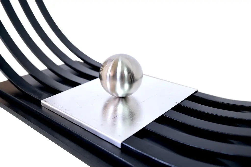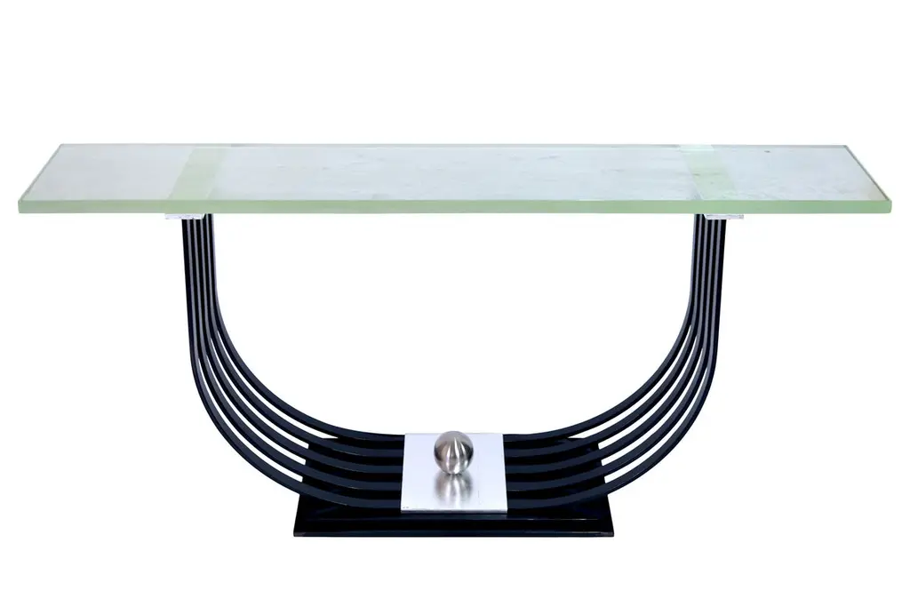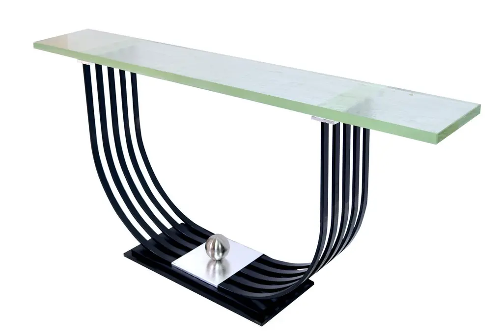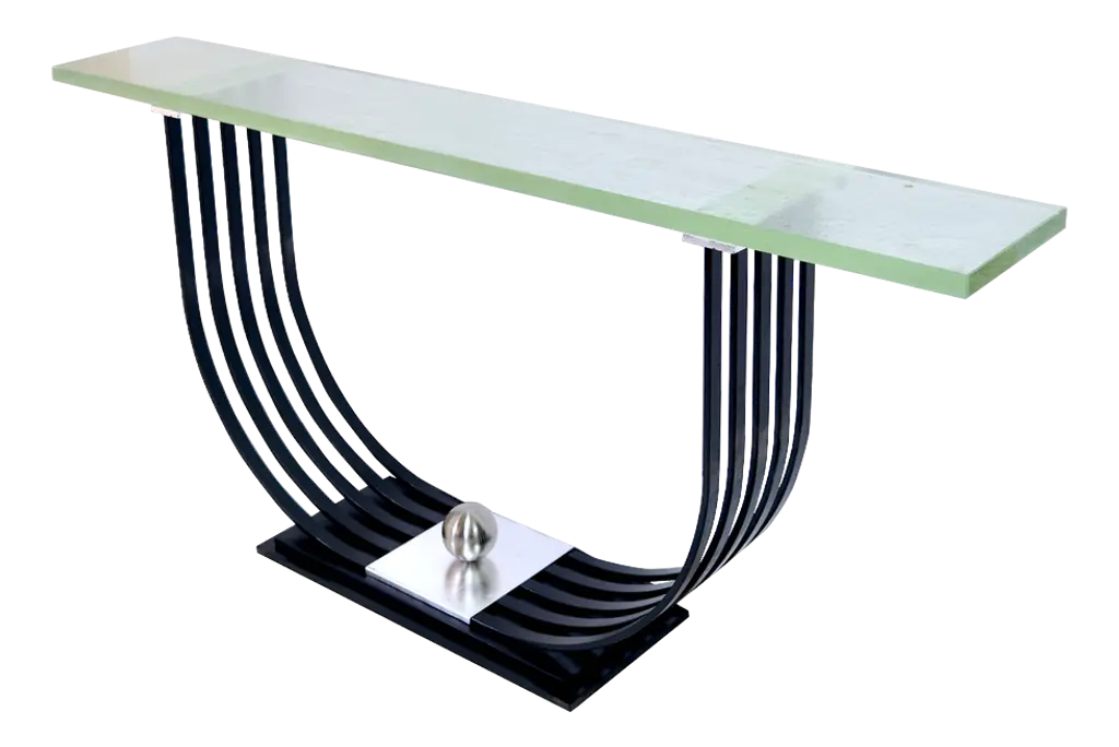 Art Deco Console Table With Iron Mount And Thick 1930s Saint Gobain Glass Top
