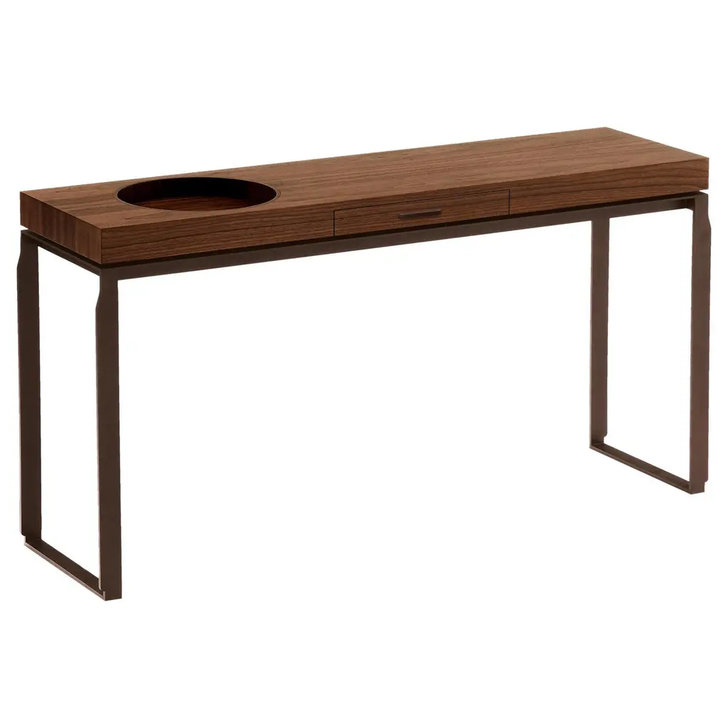 Art Deco Style His Low Console Made With Walnut And Iron, Handmade