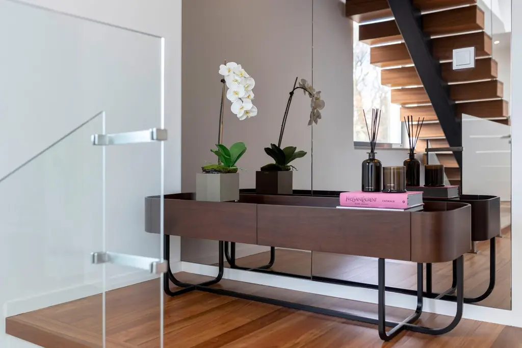 His & Her are complementary collections whose aim is to affirm the brand´s aesthetic. These two collections are inspired by artistic movements from the beginning of the 20th century, namely in the aesthetic plurality that spread throughout Europe of Art Nouveau, and later in Art Deco, as well as in International Style that has developed around the world.With unique black iron finishes, the His low console is the choice for more Minimalist environments. The play of materials makes this console an easy choice to match your decorating style. The high quality of the finishing materials of the Stylish Club pieces provide unique and exclusive interior designs. The walnut wood of the His console delivers delicate luxury. Discreet and bold, the His console brings a masculine and charming atmosphere to the room. Conjure it up with the rest of the collection and feel your space filled with glamour.As the product can be personalised, the image of thepresentation is merely illustrative.