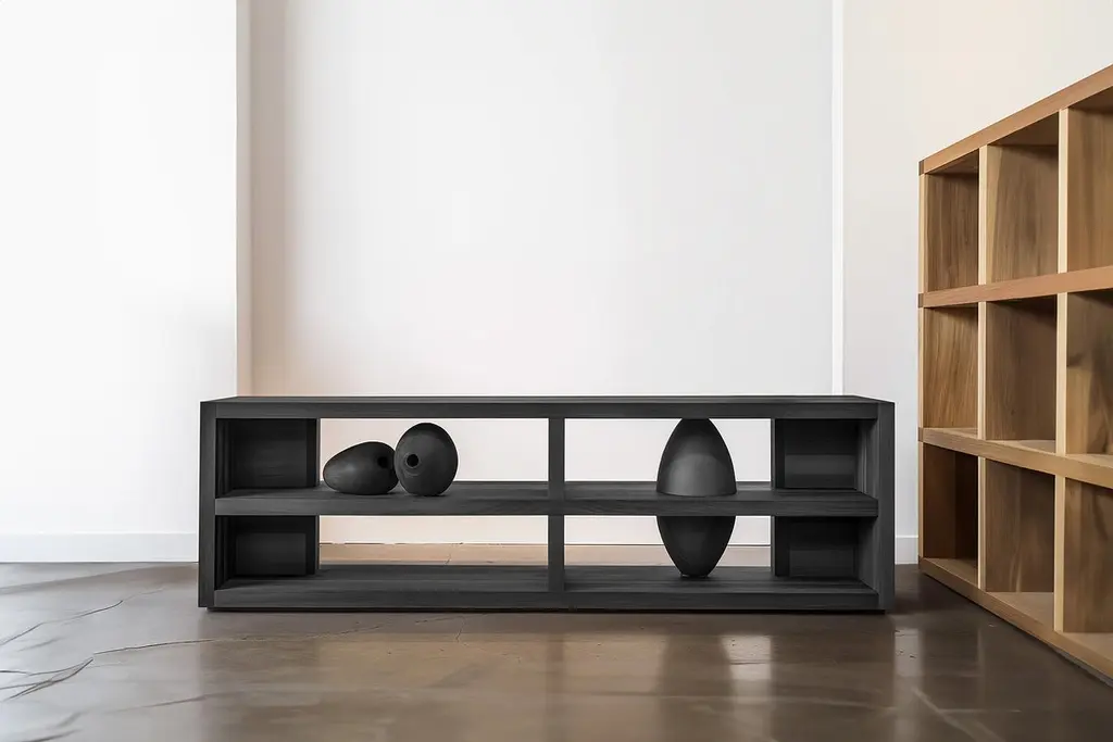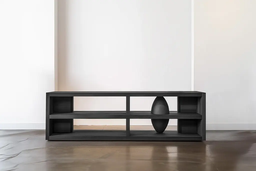 Artistic Furniture Console 16, Sereno by NONO, Unique Sculpture—Sereno CollectionDesign by Joel Escalona for NONOWhen practicality becomes art, the result is the Sereno Collection by Joel Escalona for NONO. This collection redefines tranquility through exquisite credenzas and sideboards that stand alone in their beauty, embodying a serene simplicity that everyone can feel.The Sereno Collection celebrates minimalism with pieces that don’t need additional decoration to make a statement. Each credenza and sideboard is adorned with unique wooden sculptures, reminiscent of a tranquil pebble, thoughtfully placed to enhance its elegance. These pieces are crafted from solid wood, adding character to each design. Standard models use red oak, but customization with various woods and finishes like walnut, teak, and burnt oak is available to perfectly suit your style and space.Founded in 2011 by Joel Escalona, NONO has over a decade of experience producing high-quality interior furnishings. Joel’s work transcends categorization, blending creativity, productivity, and introspection. His multifaceted approach, encompassing drawing and sculpture, infuses his designs with lyricism, humor, and poetry.NONO's philosophy centers on transforming everyday beauty into extraordinary art forms, seamlessly blending functionality and aesthetics. Each Sereno credenza and sideboard exemplifies this philosophy, offering both beauty and practicality. When you choose a piece from the Sereno Collection, you’re not just acquiring furniture; you’re bringing a piece of art into your home.Each piece in the Sereno Collection makes you feel serene and tranquil, embodying a minimalist elegance that doesn’t require additional ornamentation. The beauty of these designs is that they are complete in themselves. You don't need to add anything else to the compartments or surfaces; they stand alone, transforming any living room or interior project with their quiet sophistication.Experience the serene elegance of the Sereno Collection by Joel Escalona for NONO, where every piece speaks softly yet powerfully, transforming your space with its quiet beauty.———Some details to consider when placing an order with us:• Catalog images are digitally generated. Actual products may slightly vary in texture, grain, and final finish due to natural material differences. Despite these variations, our expertise ensures each piece maintains high quality and matches the intended design.• All of our products are made to order, and the lead time for standard products is estimated to be 9 to 12 weeks, plus shipping time. However, special pieces or sculptures may require a longer lead time.• We offer customization in dimensions and finish for all of our furniture pieces, which may result in additional charges.• We only facilitate freight services by a third party. The client is solely responsible for any associated import/export taxes, as well as any necessary customs paperwork.• We are not responsible for any damages that may occur during shipping or for any customs-related delays.