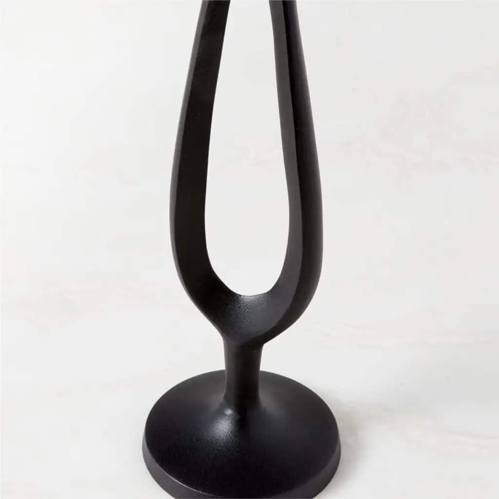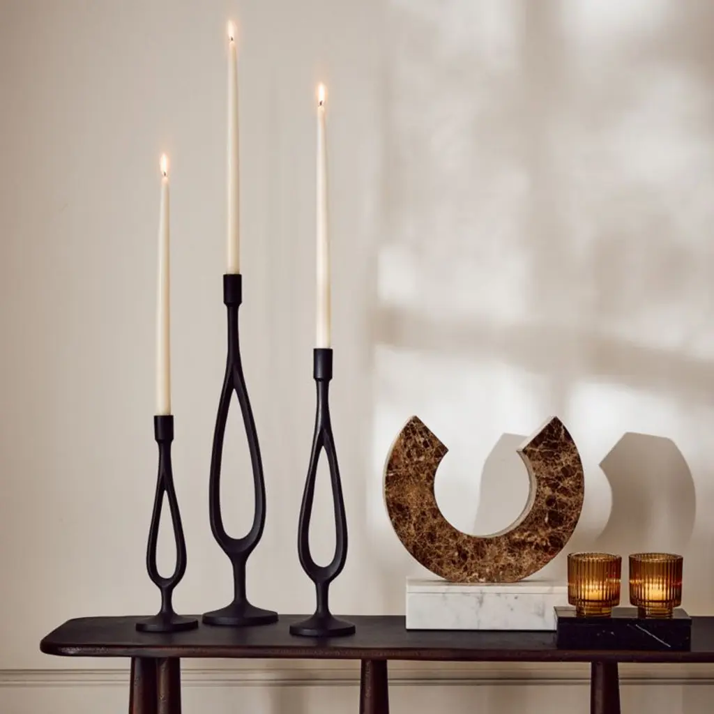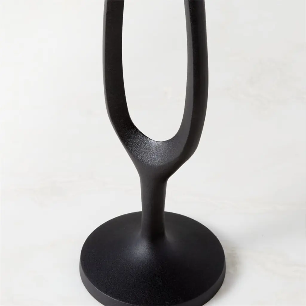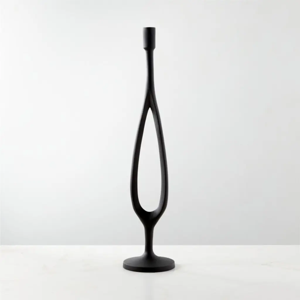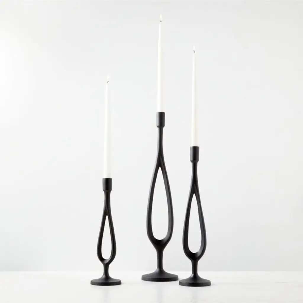 In this modern design by London-based Studio ANANSI, a single taper candle is supported by a graceful sand-cast base with a textured matte black finish. Taper candle holders can be styled as a centerpiece on the dining table, mantel or entry console table. CB2 exclusive.