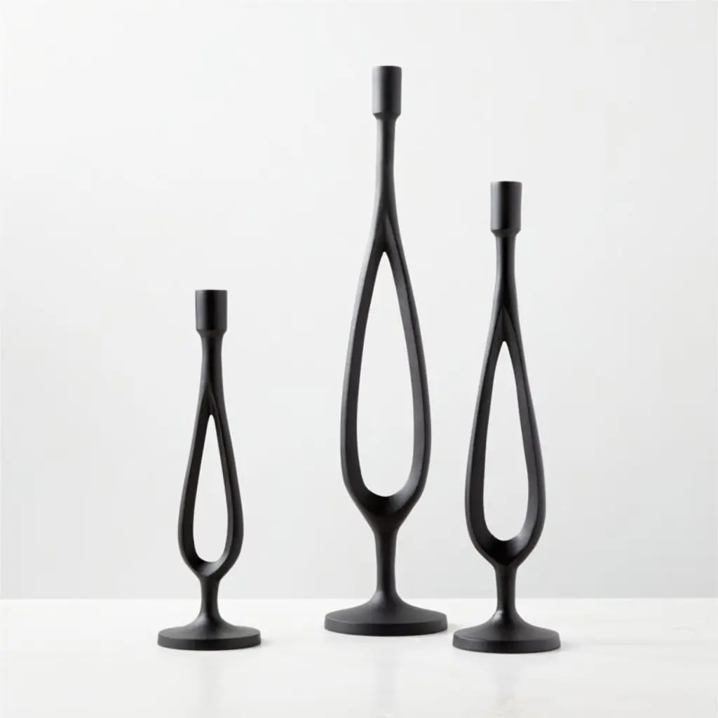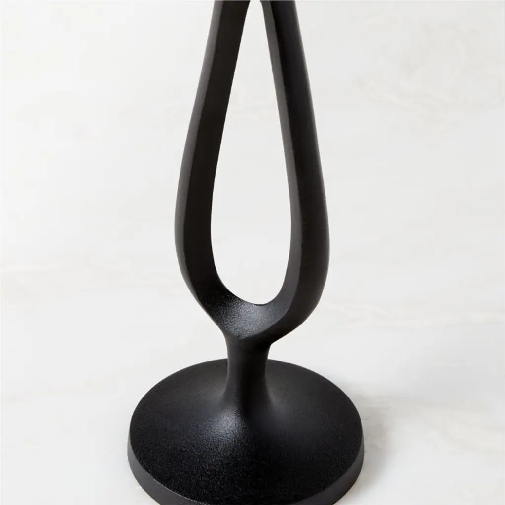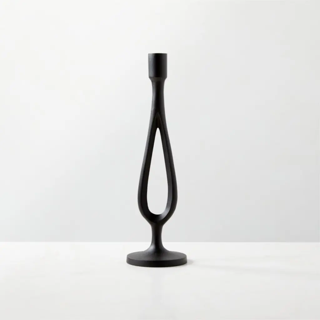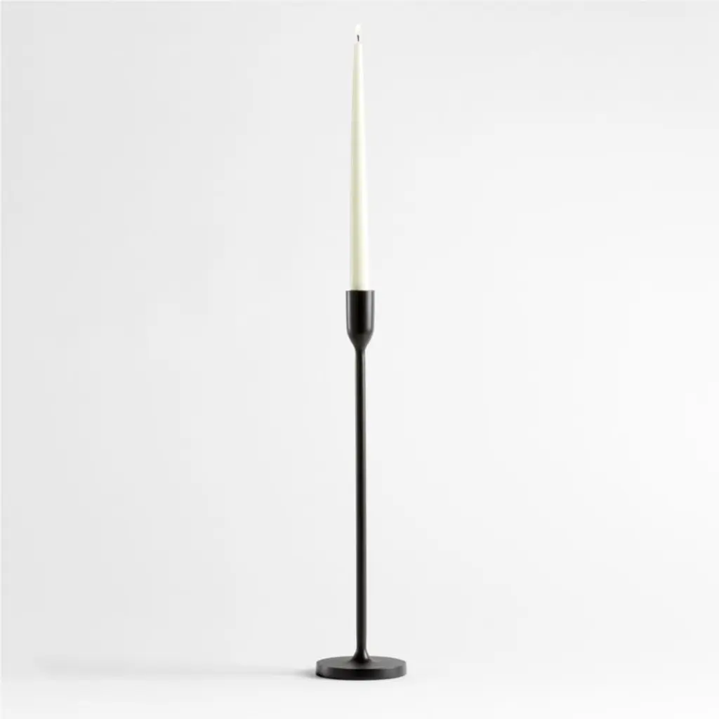 In this modern design by London-based Studio ANANSI, a single taper candle is supported by a graceful sand-cast base with a textured matte black finish. Taper candle holders can be styled as a centerpiece on the dining table, mantel or entry console table. CB2 exclusive.