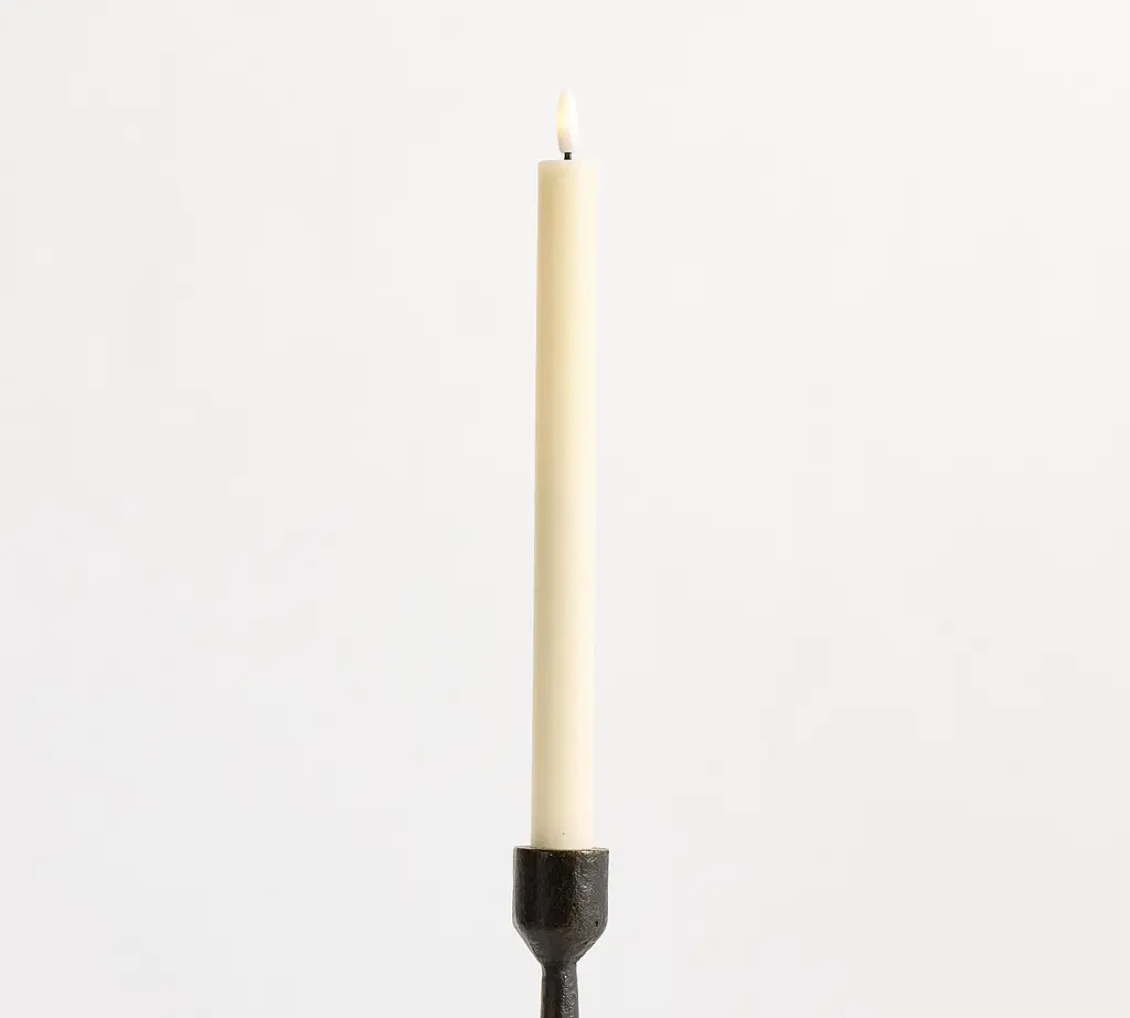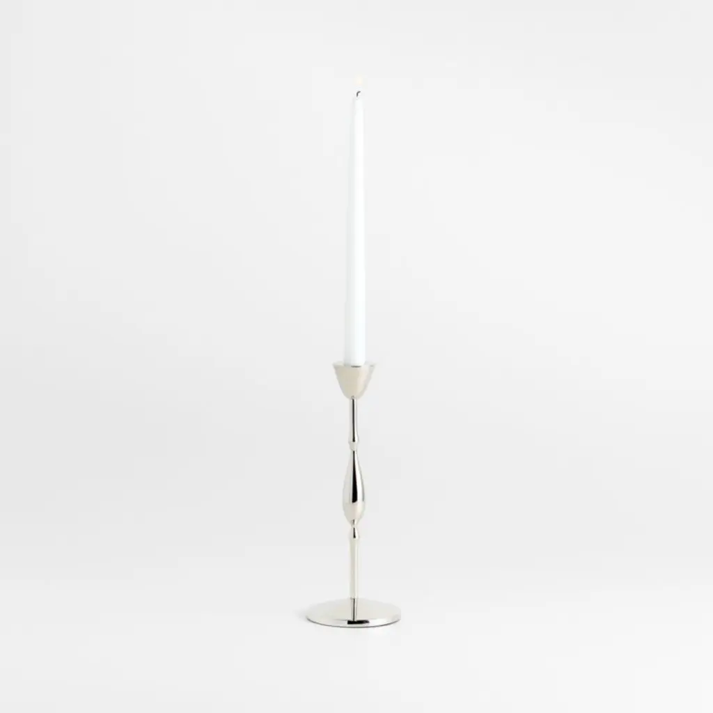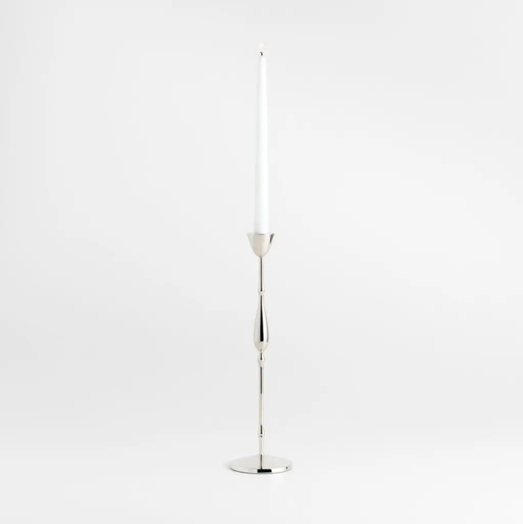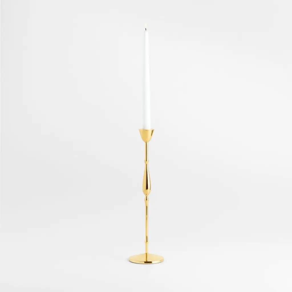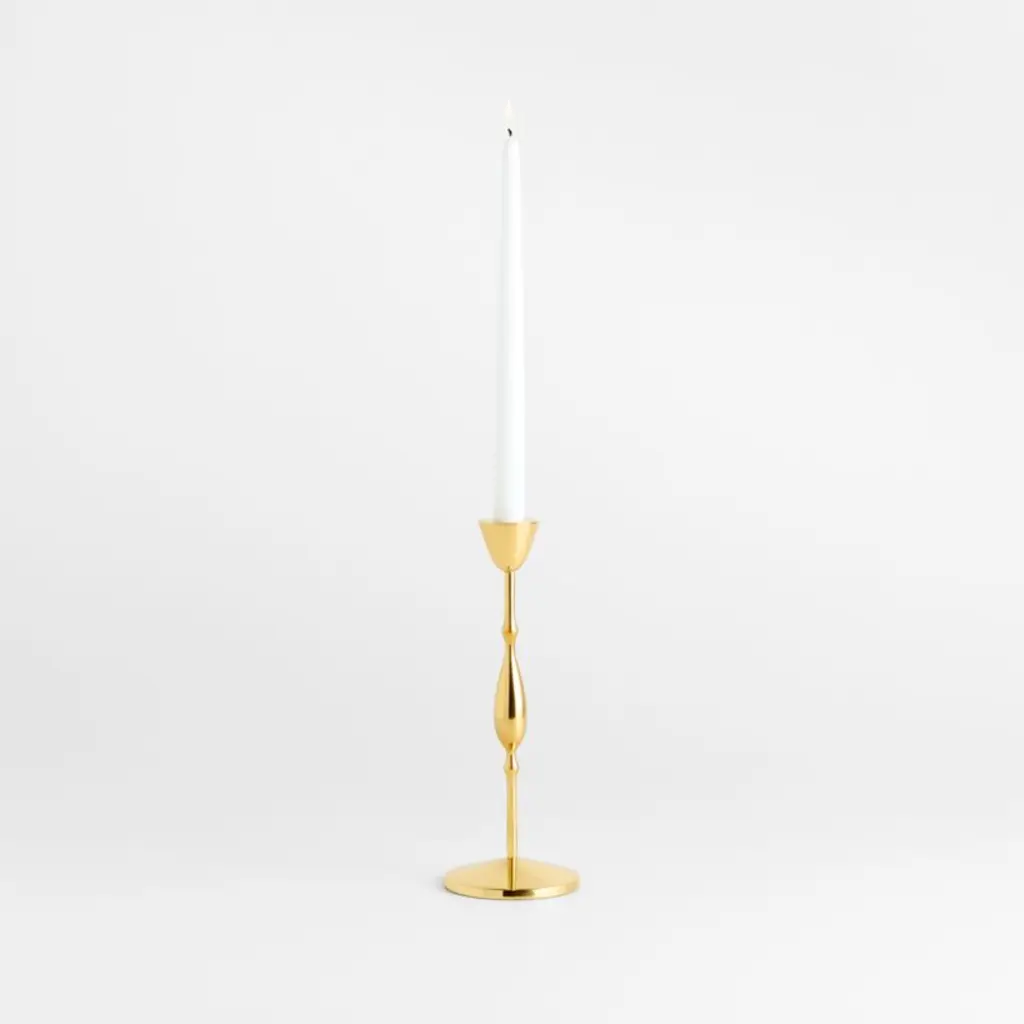 In this modern design by London-based Studio ANANSI, a single taper candle is supported by a graceful sand-cast base with a textured matte black finish. Taper candle holders can be styled as a centerpiece on the dining table, mantel or entry console table. CB2 exclusive.