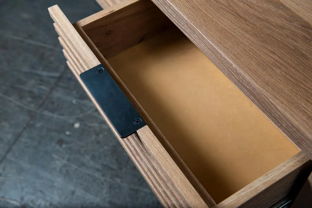 Atwater Drawer Console By Ambrozia, Solid White Oak, Dijon Leather & Metal