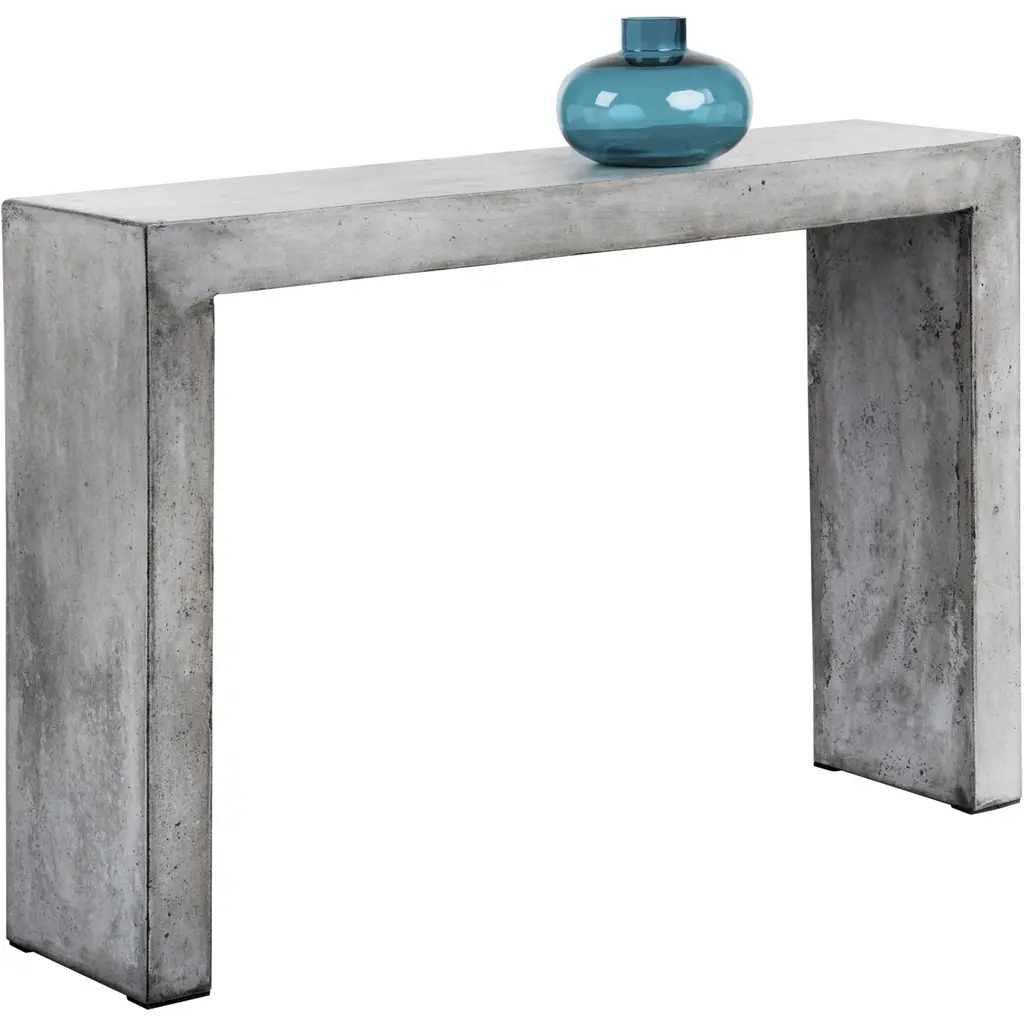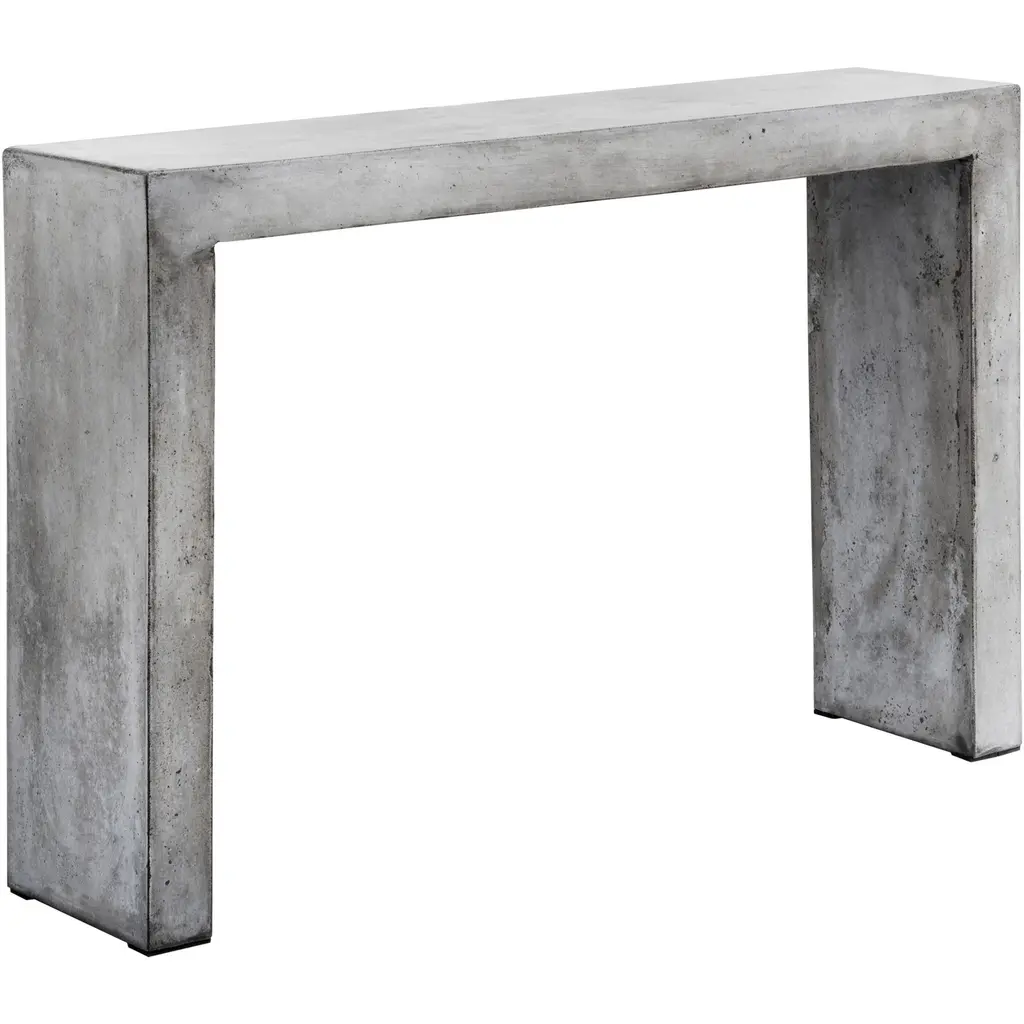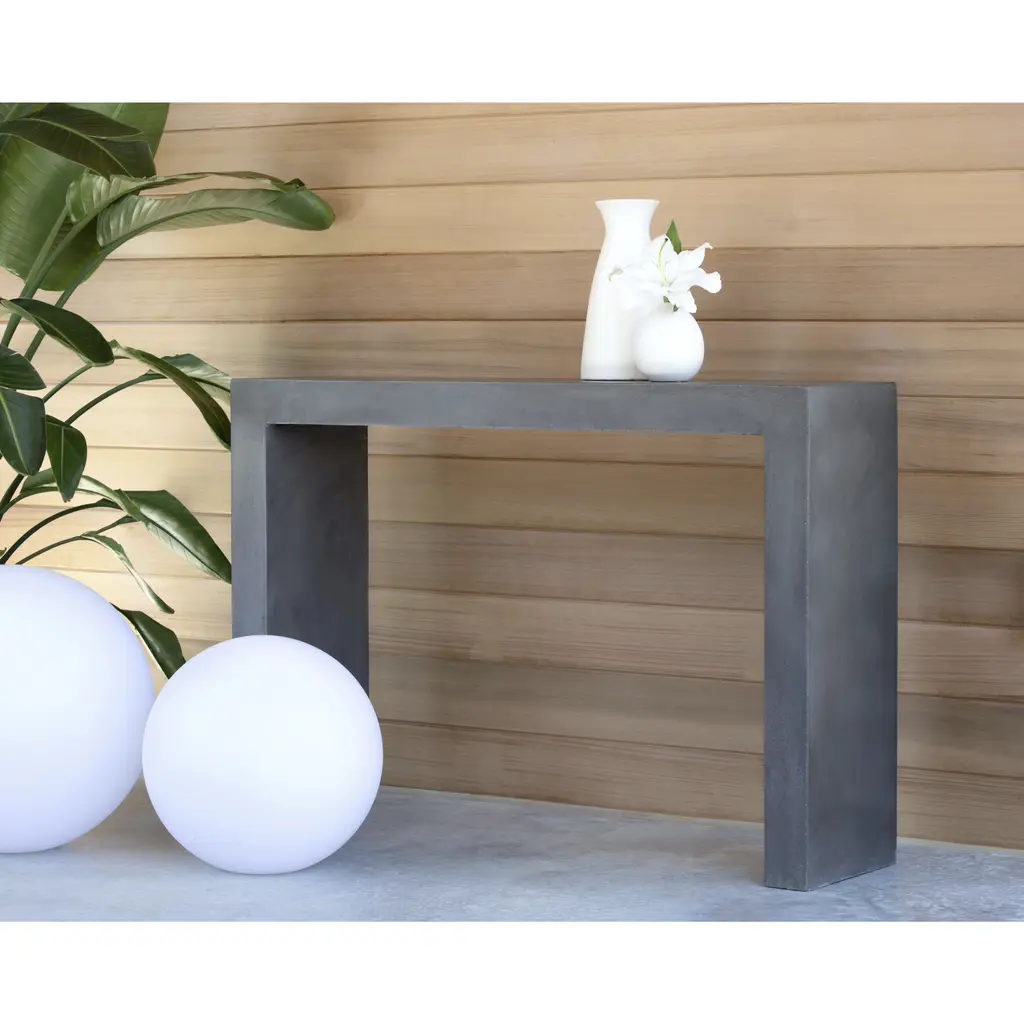 This console makes a bold statement with its clean lines and concrete construction in grey and black. Ideal for small spaces with its narrow depth.