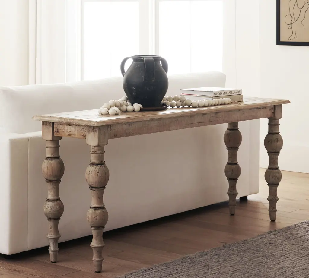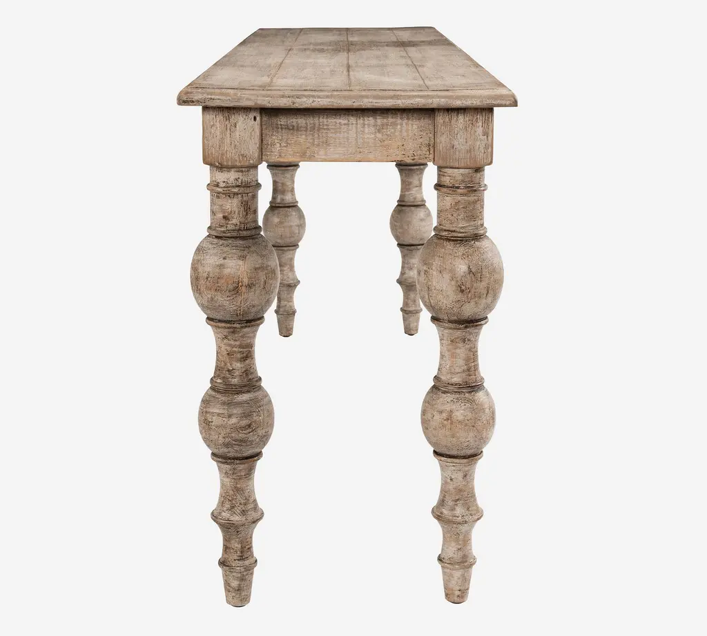 The Bander Console Table is where old-world European design and rustic farmhouse style strike perfect balance, as illustrated by its French-style baluster legs and warm, distressed finish. Crafted of reclaimed wood, each piece is hand-selected for its time-honored beauty and provincial charms.