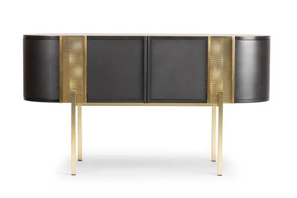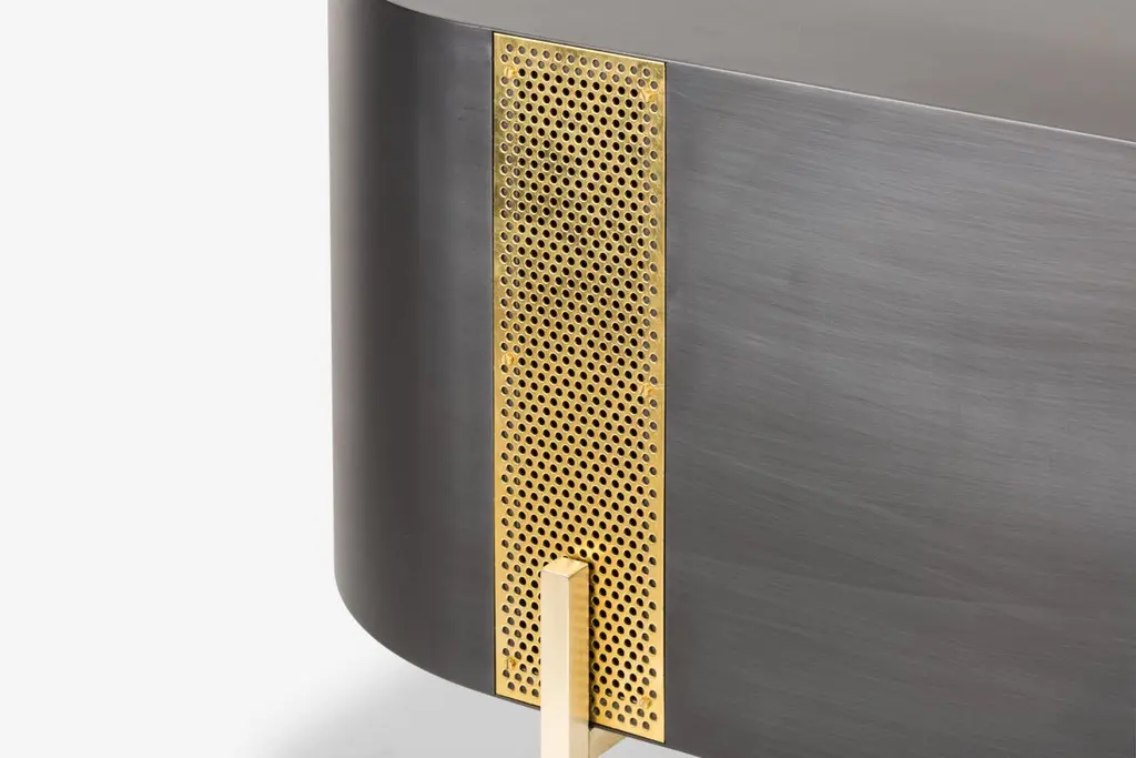 Be-Lieve console extra by MingardoDimensions: D153 x W55 x H80 cm Materials: Varnished iron structure and brassWeight: 90 kgAlso Available in different finishes and dimensions.Decorative and at the same time essential, the enclosing console designed by Lorenza Bozzoli is a timeless piece of furniture. The line is sinuous and compact and the style brings back to a rich and glorious past. Nets give mystery and grace to this product, where noble materials such as brass and iron are finished with galvanic surface treatments, and proposed in inedited colors. Made entirely by hand, Be-Lieve is a work of craftsmanship virtuosity.Mingardo Ilario founded Mingardo Blacksmith Workshop in 1970, after over twenty years’ experience in the metal processing field.The production was initially focused on simple blacksmith works for the construction industry. Over the time, it has become more refined, enabling the company to collaborate with internationally renowned companies and architects: from the first collaborations with architect Carlo Scarpa to the more recent commissions for Museo del Novecento in Milan, Parco della Musica in Florence, and Teatro Petruzzelli in Bari.Over the years, the Workshop has achieved great results, with the production of unique metal products, all hand-wrought by a highly skilled team of specialized artisans. Nowadays, it is highly regarded in the local artisan field for its high-end refined finishing touches and details, and for its know-how