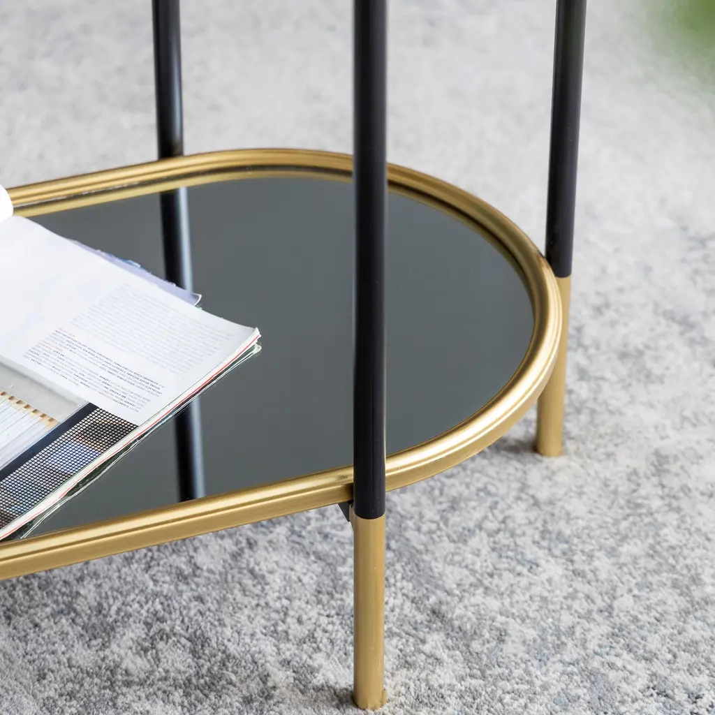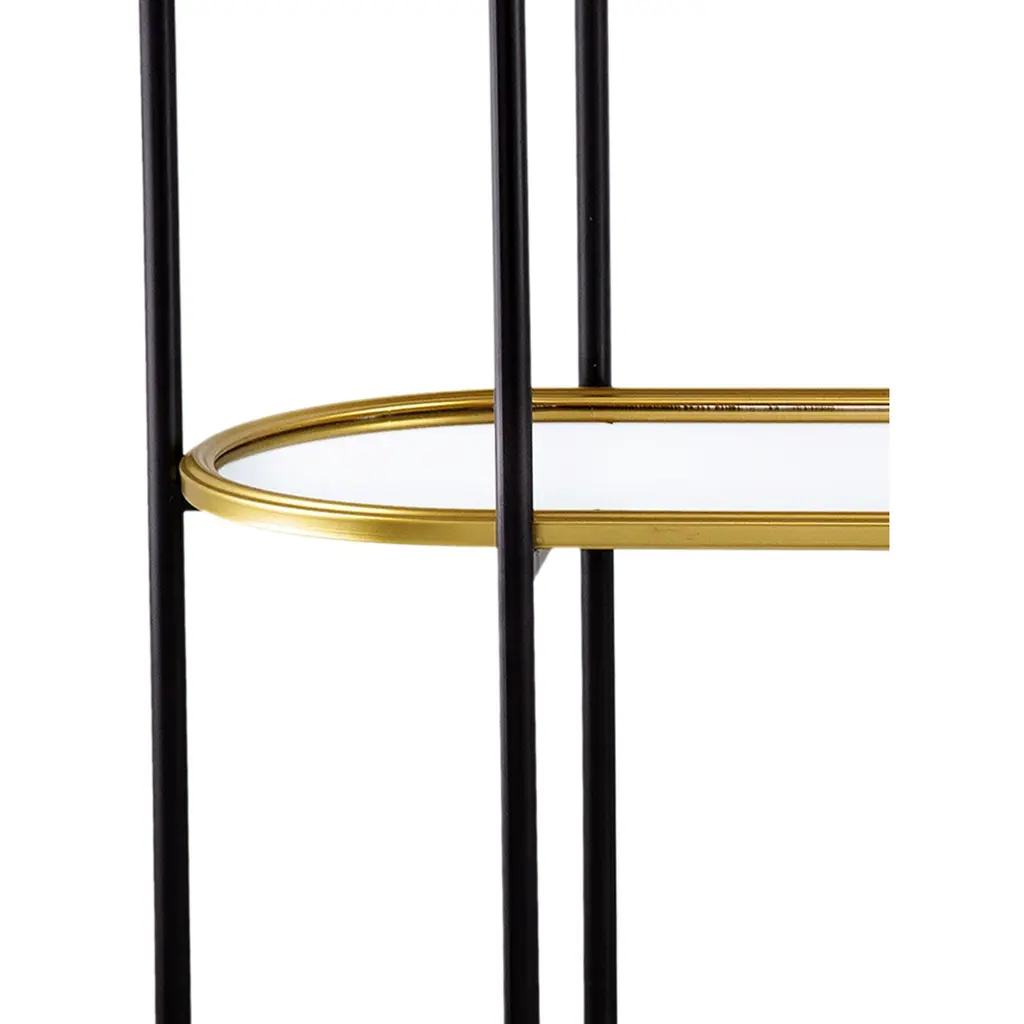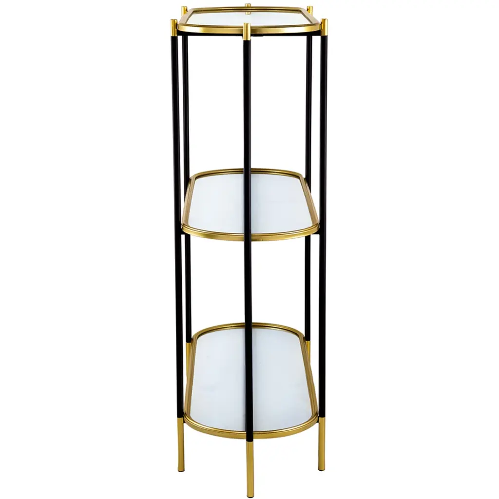 The Bertram 3-Tier Metal Console Table features open shelving at different levels, featuring a mirror base to store and display your most prized possessions. Finished in a gold rim and elegant black legs, this versatile table will add a splash of luxury to your home with a modern chic feel.