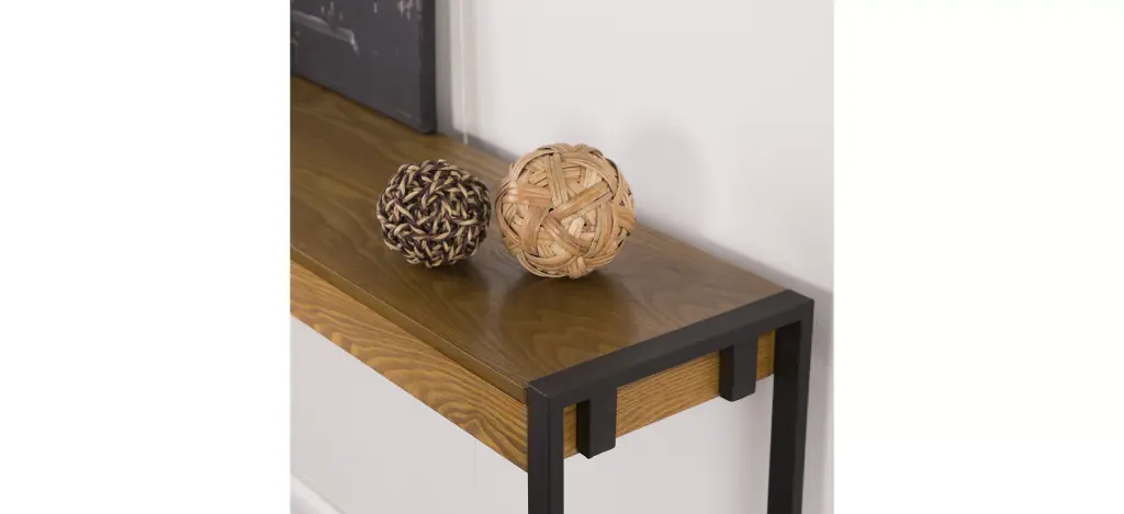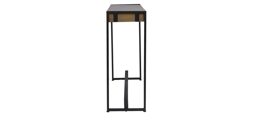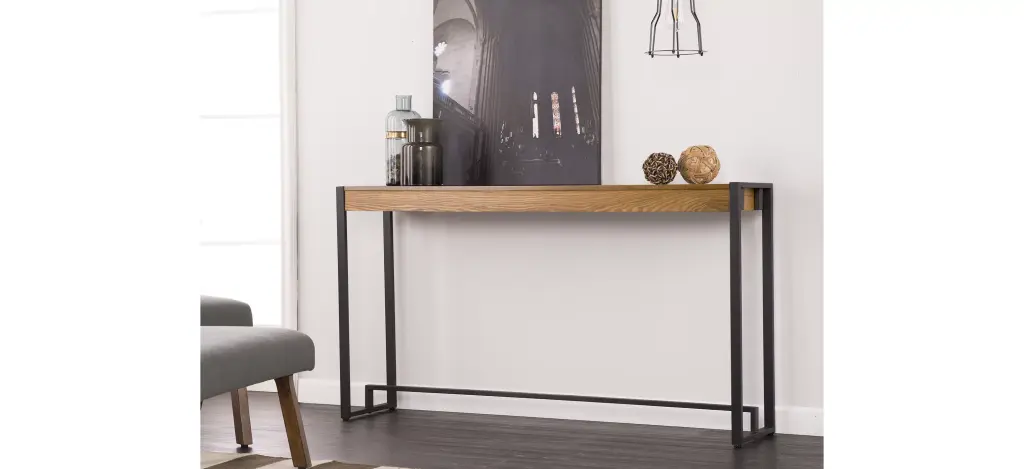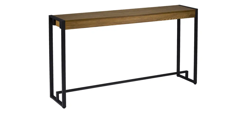The Bingham Console keeps life simple yet makes a bold statement with mixed materials and an industrial vibe. Flexible to fit your style and put it on display. Warm up small spaces with the reclaimed look of weathered gray oak, whilecontrasting black metal gives this narrow console table a firm leg to stand on.