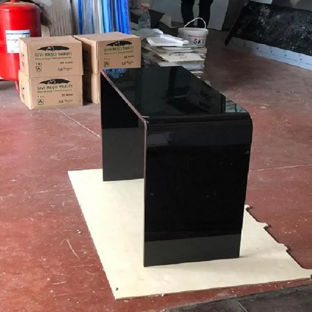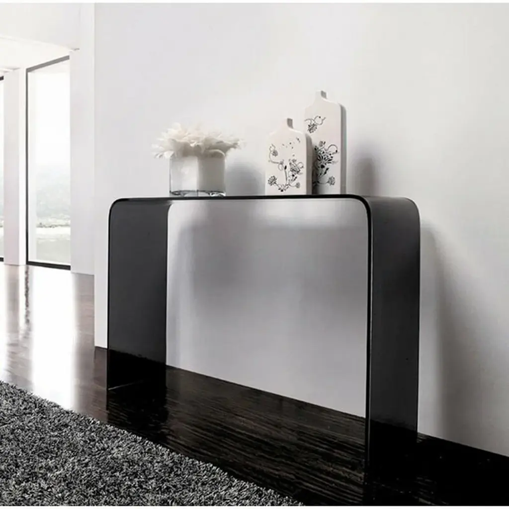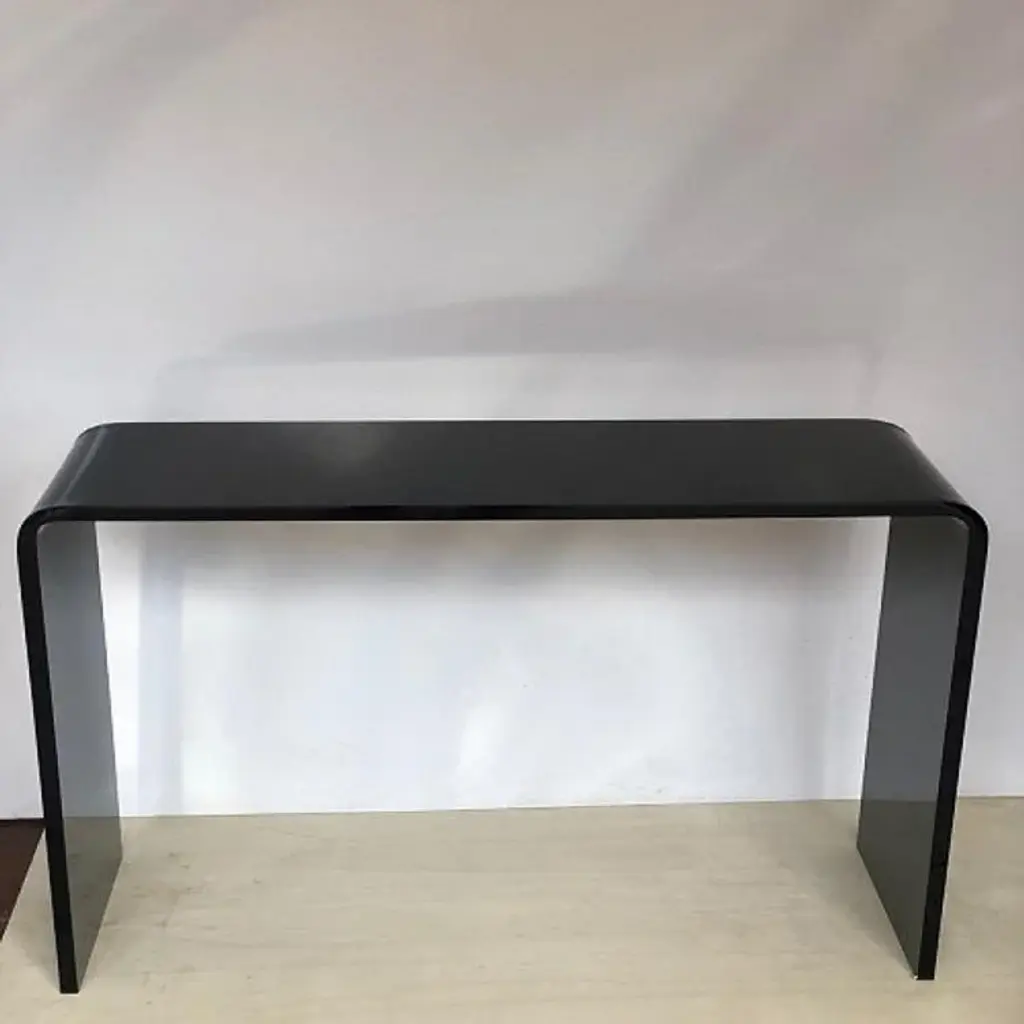 Our black console table floats in a room without permanent visual seating. In a single continuous turn, thick-cut acrylic plexi will look very stylish in entrances, corridors and behind the sofa. It is made of 15 mm black acrylic material. Clean with mild soap and water; dry with a soft cloth Overall dimensions Width:46 " Depth: 15 " Height: 26 "