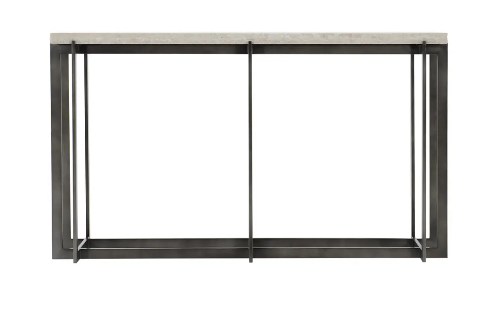 This slim, modern console is perfect for styling up hallways and reception rooms. Raife has a minimalist dark metal frame with a dark top made from petrified wood. Due to the organic nature of the petrified wood material each piece will vary in appearance making it completely unique.