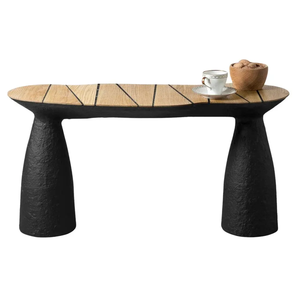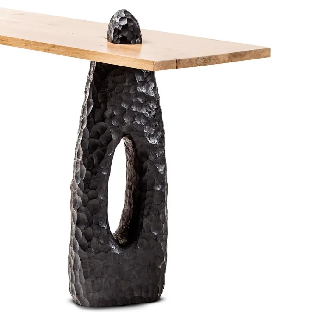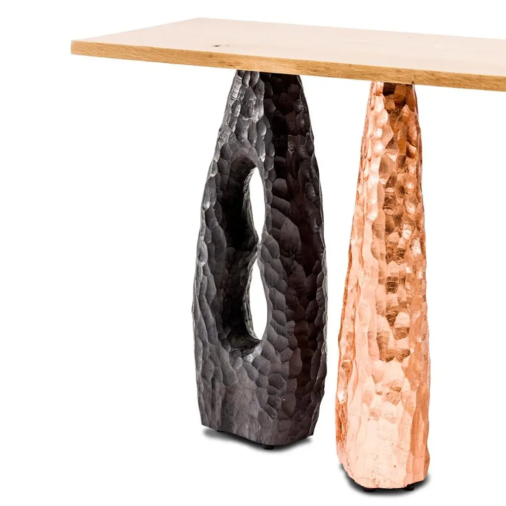 Blessing Modern Copper & Ebonized Hand Carved Wood & Oak Primal Console By Egg