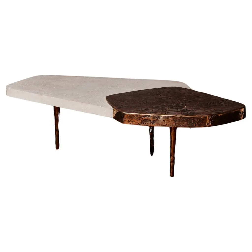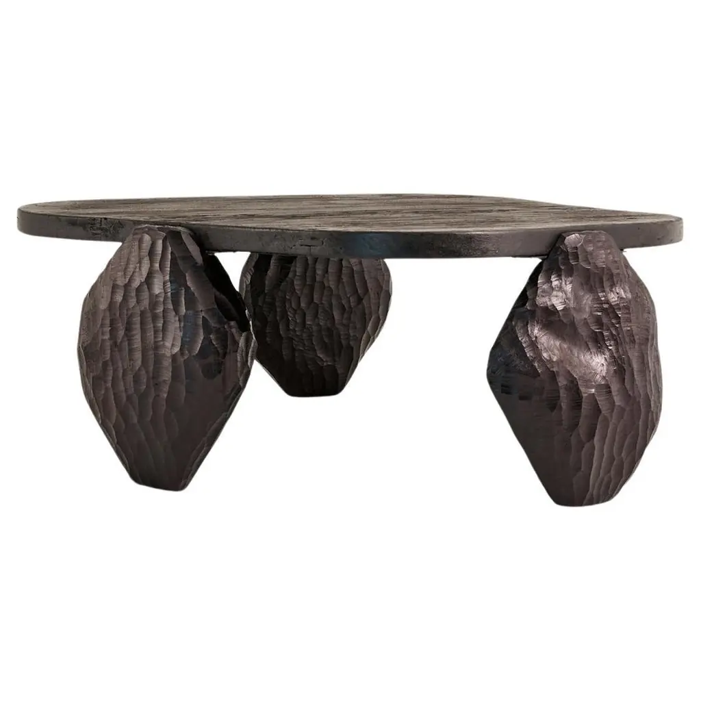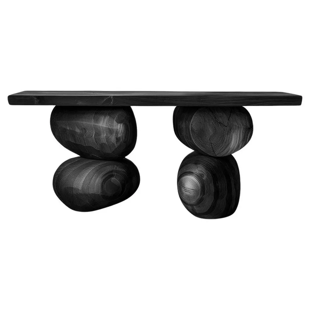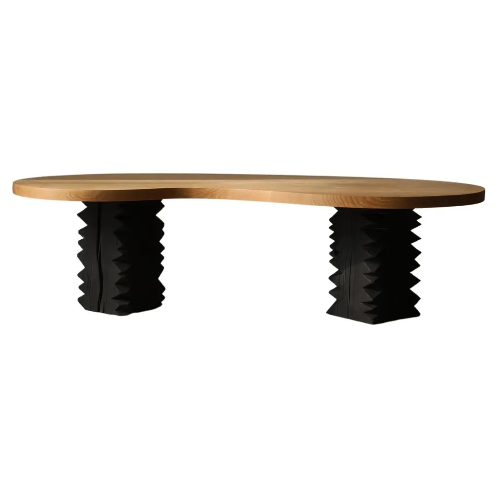 Blessing Modern Copper & Ebonized Hand Carved Wood & Oak Primal Console By Egg