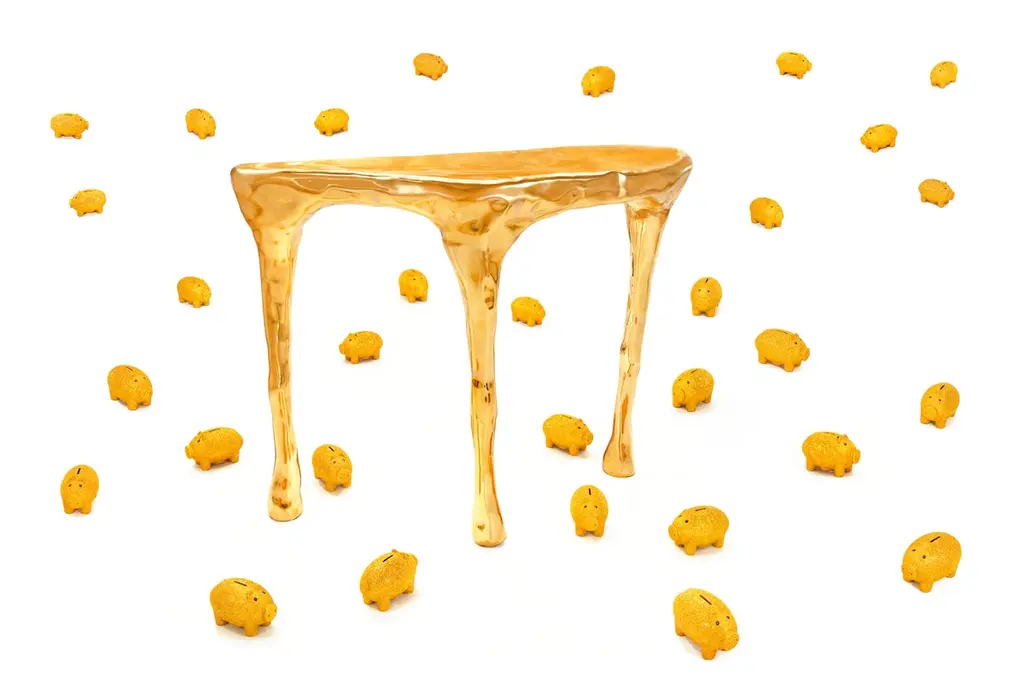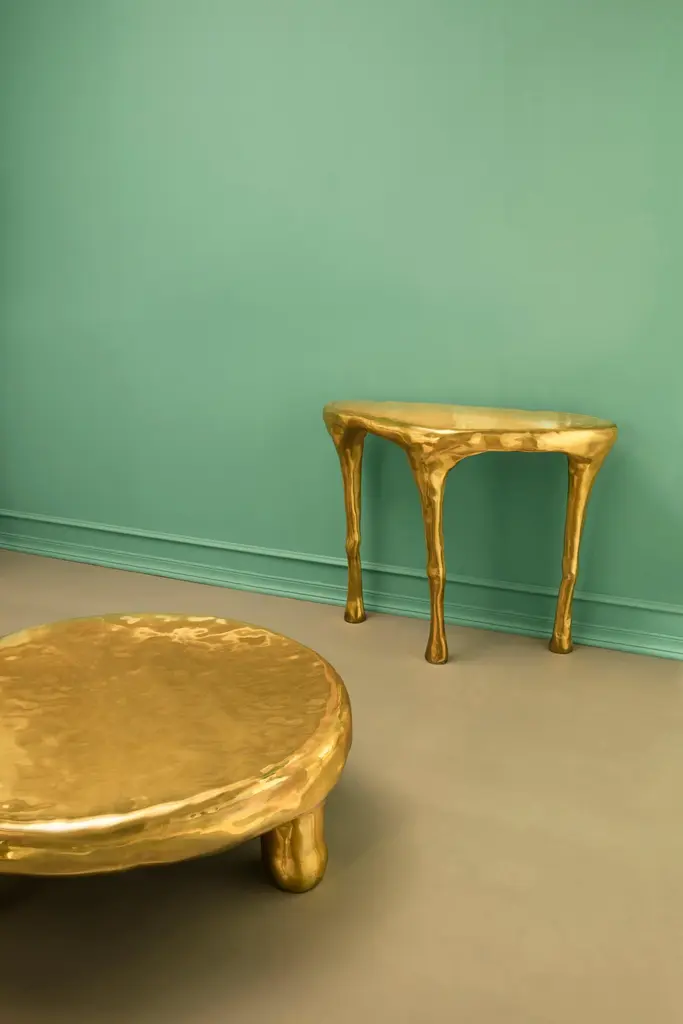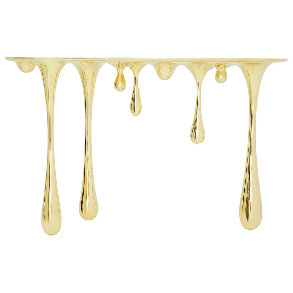 Bliss Console in Brass by Scarlet Splendour is a console table with versatile functionality. Its rich texture and color combine traditional techniques in pure brass with contemporary amorphous sculpting.The Fools' Gold Collection of amorphous forms, cast in brass, is a tribute to the heritage of Indian metal craftsmanship. India, in fact, is one of the largest brass makers in the world. The art of brass handicraft has been practised here for almost 5 million years, say historians. Brass, a simple alloy of copper and zinc can often be confused with gold. Much like Martin Frobisher, the British seaman who visited Canada in the 16th century, saw a shiny metal like gold, mistaking it to be gold itself.Care: Wipe with a soft, dry cloth. Use a brass cleaner if required.Please note: Each piece in the Fools' Gold collection exalts the handmade, the painstakingly crafted, the authentic. A piece may have slight variations and tiny imperfections but these are the marks of an artisan, a testament to the individuality of each work of art. It is our belief that these variations infuse our objects d'art which desire and we assert our right to make the necessary qualitative changes. Prices do not include VAT. VAT may be applied depending on the ship-to location.
