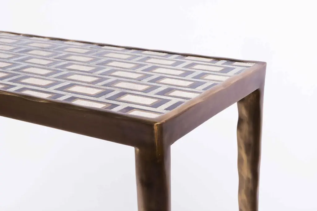 Block Pattern Console In Shagreen, Shell & Bronze-Patina Brass By R&y Augousti