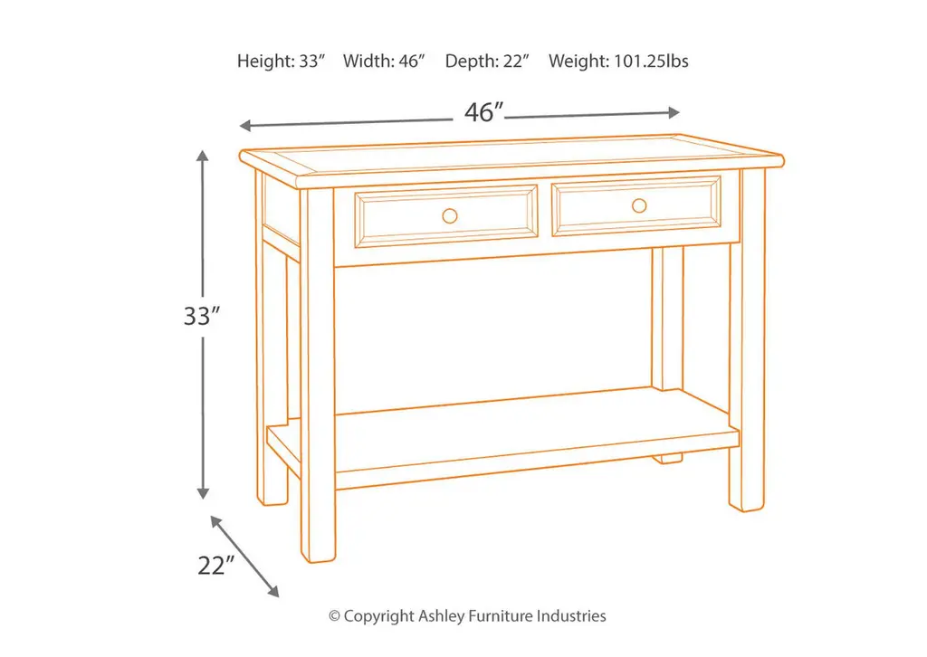 Store and showcase your favorite things with the Bolanburg sofa table. Its textured antique white finish creates a vintage two-tone look that will endure for years. Weight 85.000 lbs. (38.25kgs.)