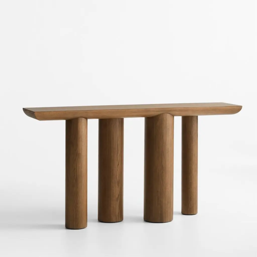 Bomen Asymmetrical Brown Oak Wood 66" Console Table